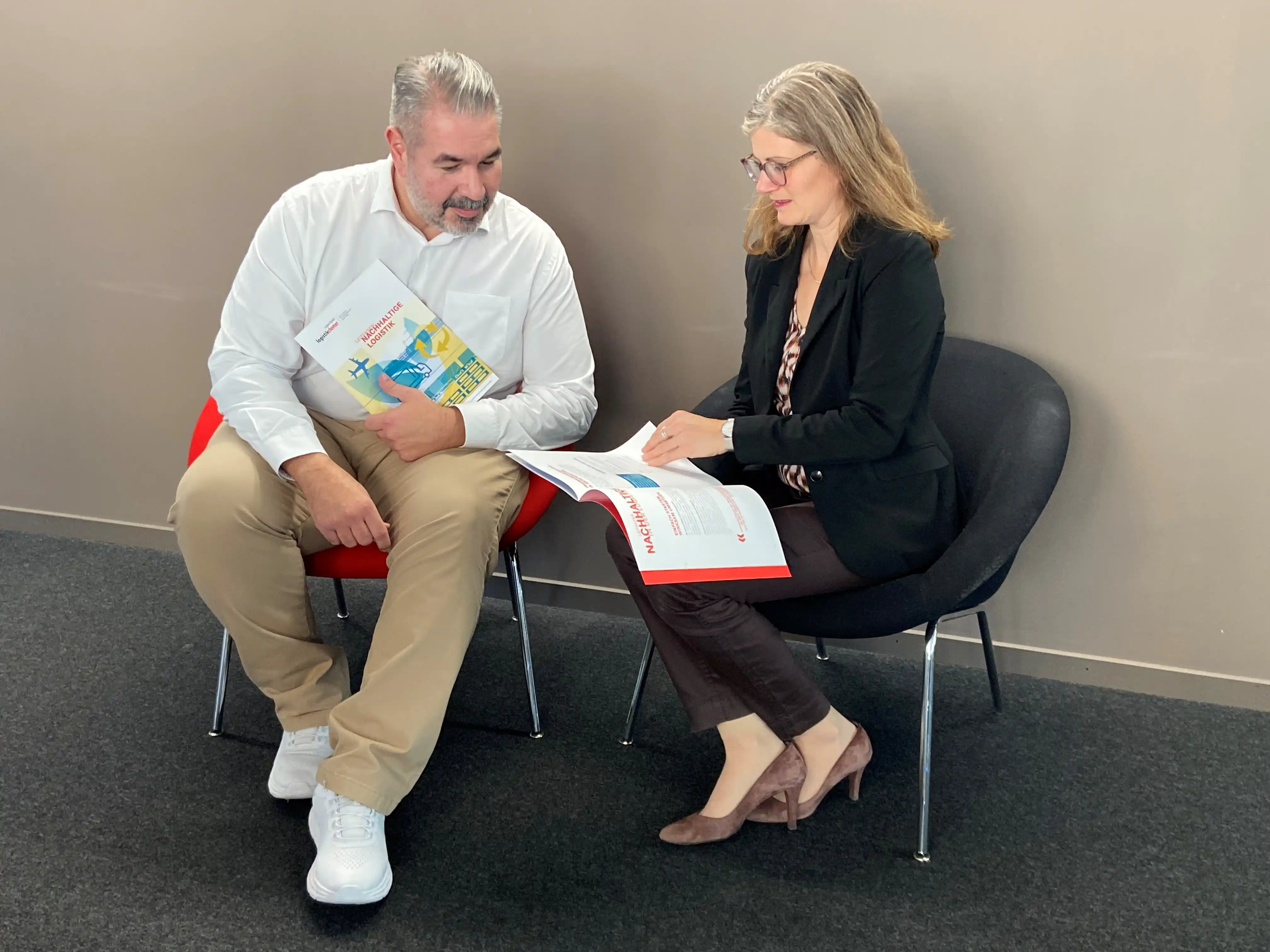 Gian Alessi, Präsident Logistikcluster Region Basel, und Deborah Strub, Leiterin Cluster & Initiativen, sind überzeugt: Der Einstieg in nachhaltiges Handeln ist einfach. Wer Schritt für Schritt vorgeht, erreicht viel – für die Umwelt, die Wettbewerbsfähigkeit und das Vertrauen der Kunden.