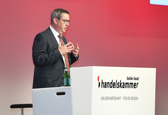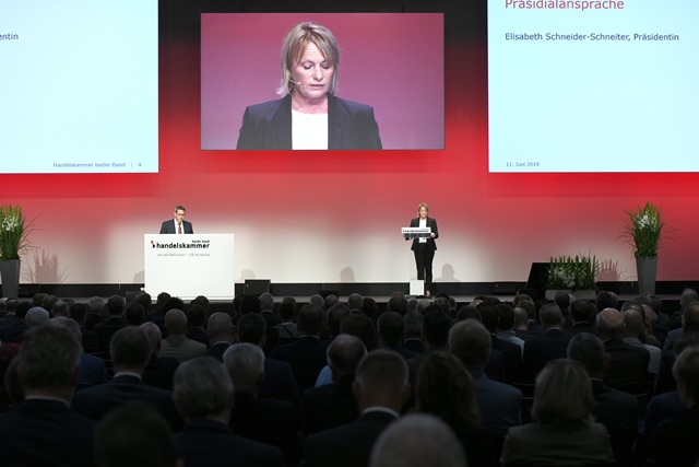 Rund 700 Persönlichkeiten aus Wirtschaft, Politik, Wissenschaft und Diplomatie trafen sich zur Generalversammlung der Handelskammer beider Basel. Als Gastreferenten begrüsste Präsidentin Elisabeth Schneider-Schneiter Bundeskanzler Walter Thurnherr.