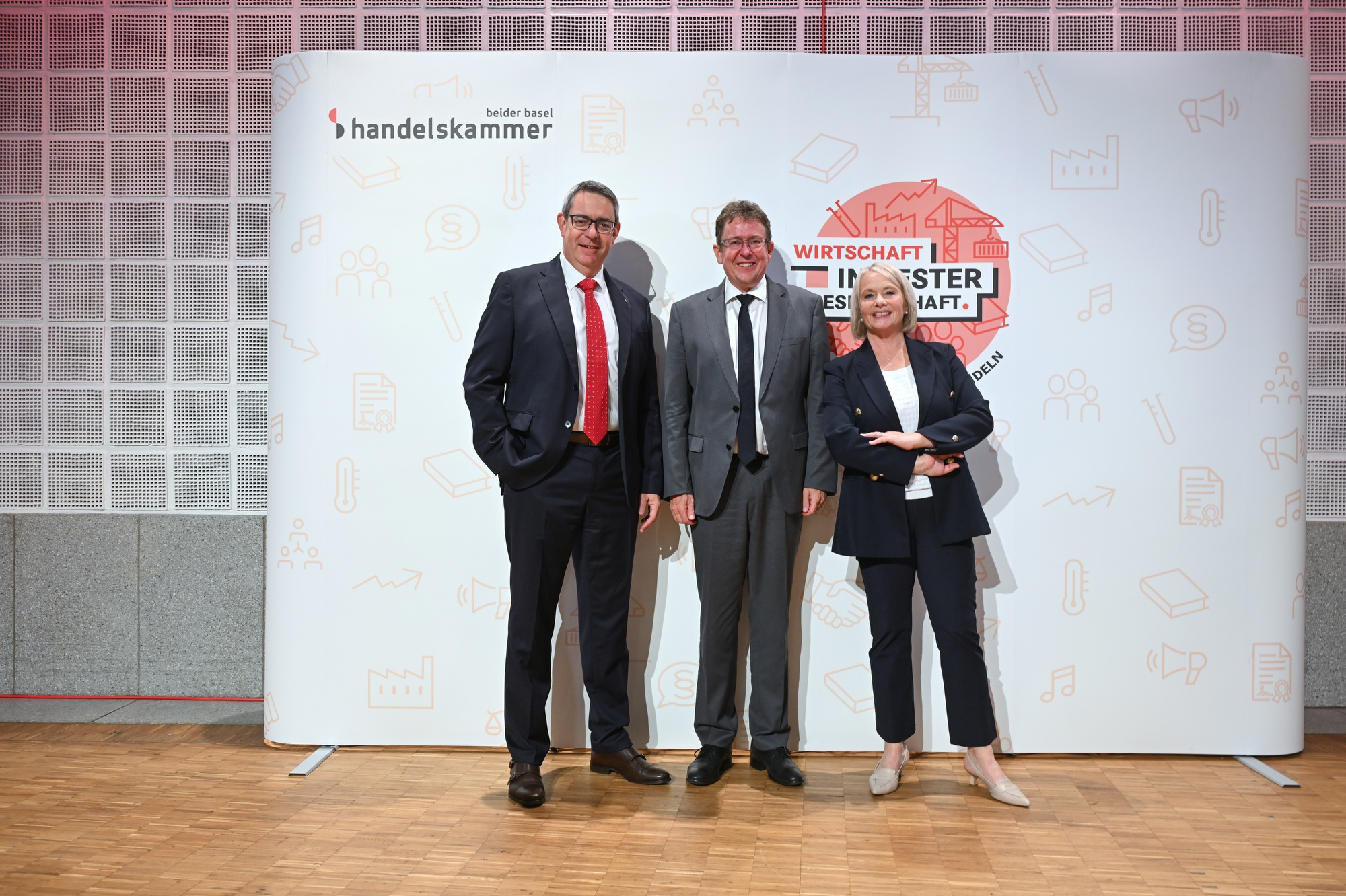 Rund 900 Gäste aus Wirtschaft, Politik, Wissenschaft und Diplomatie trafen sich heute an der Generalversammlung der Handelskammer beider Basel. Im Zentrum standen jene Faktoren, die das Tragwerk der Wirtschaft im Gleichgewicht halten und in stürmischen Zeiten stabilisieren. Gastredner Bundesrat Albert Rösti legte den Fokus auf die Infrastrukturen.