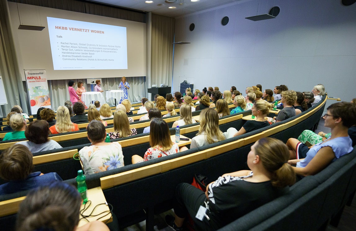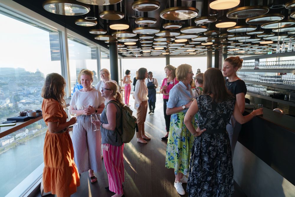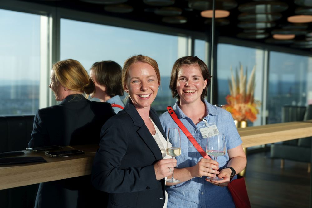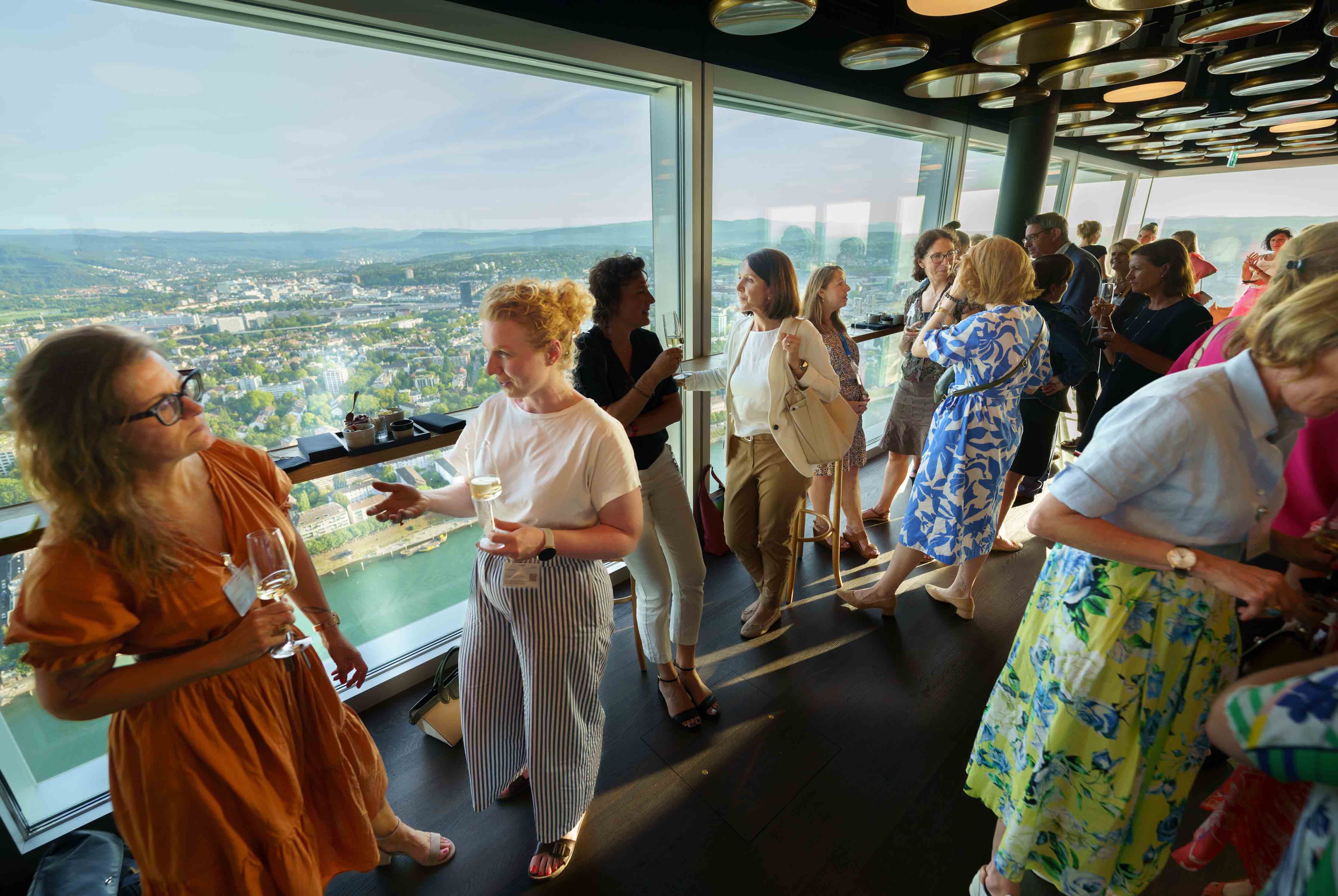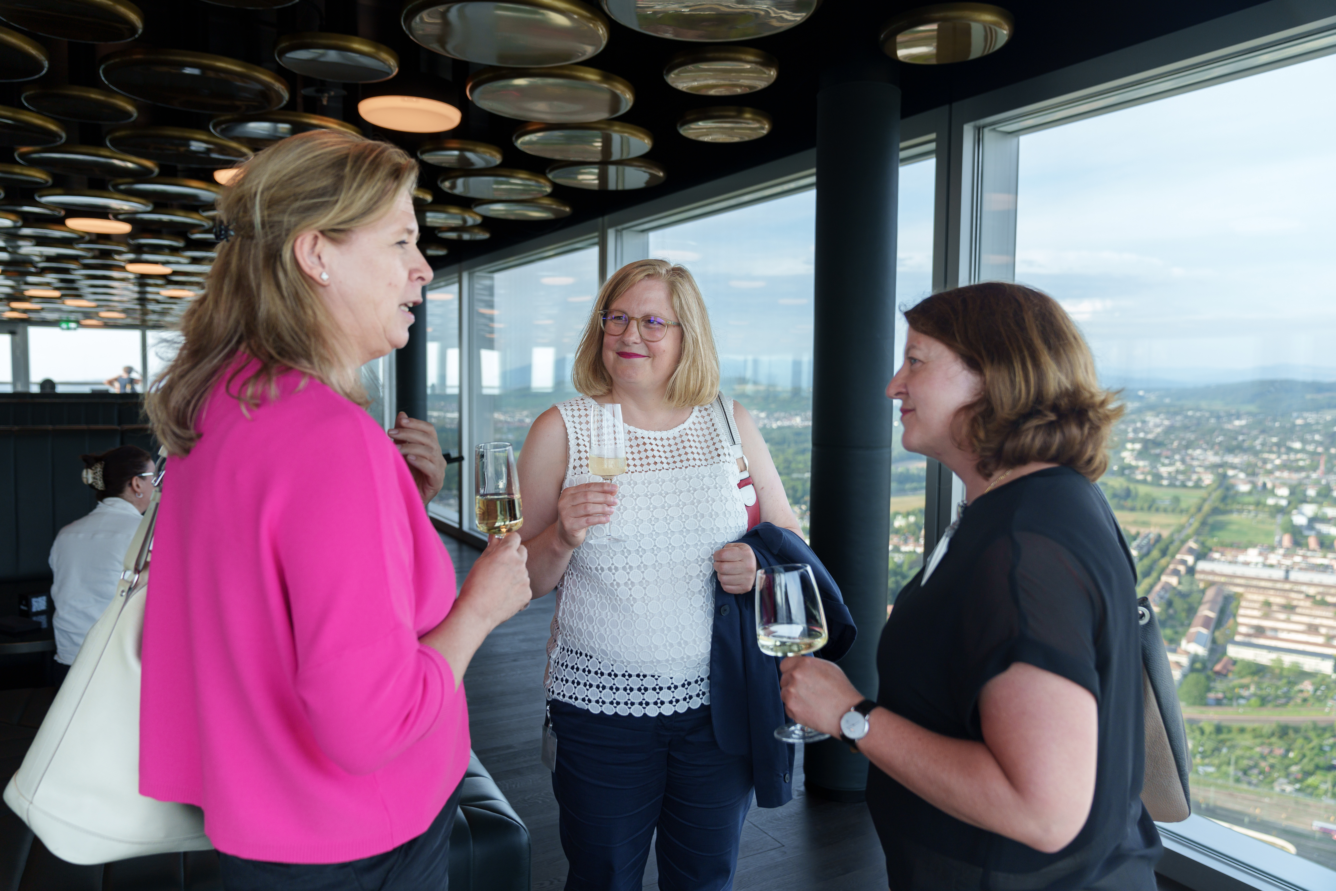 85 Frauen aus der Wirtschaft trafen sich an unserem Anlass «HKBB vernetzt» Women zum Networking. Der Afterwork-Event fand im Rochturm 2 über den Dächern Basels statt.
