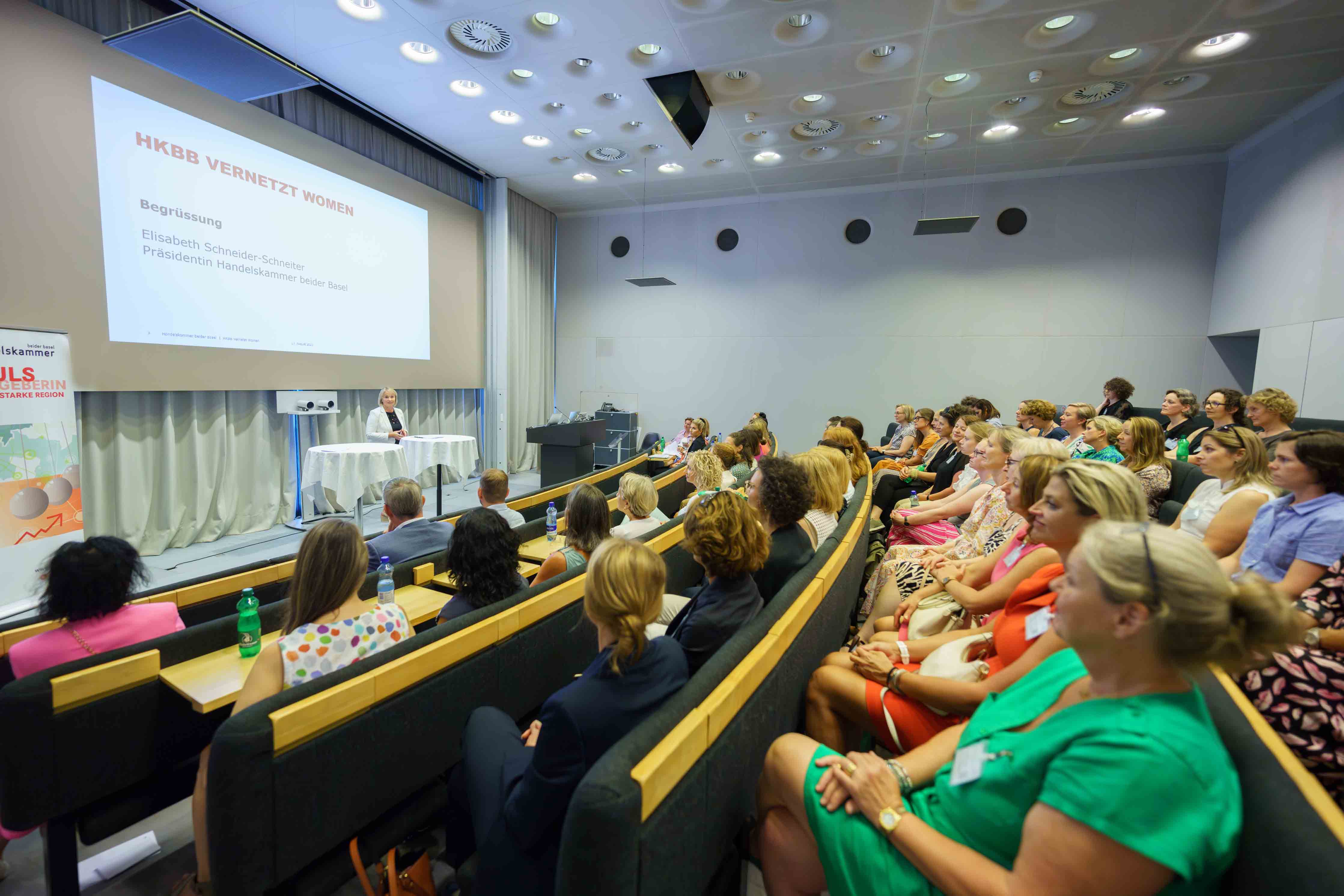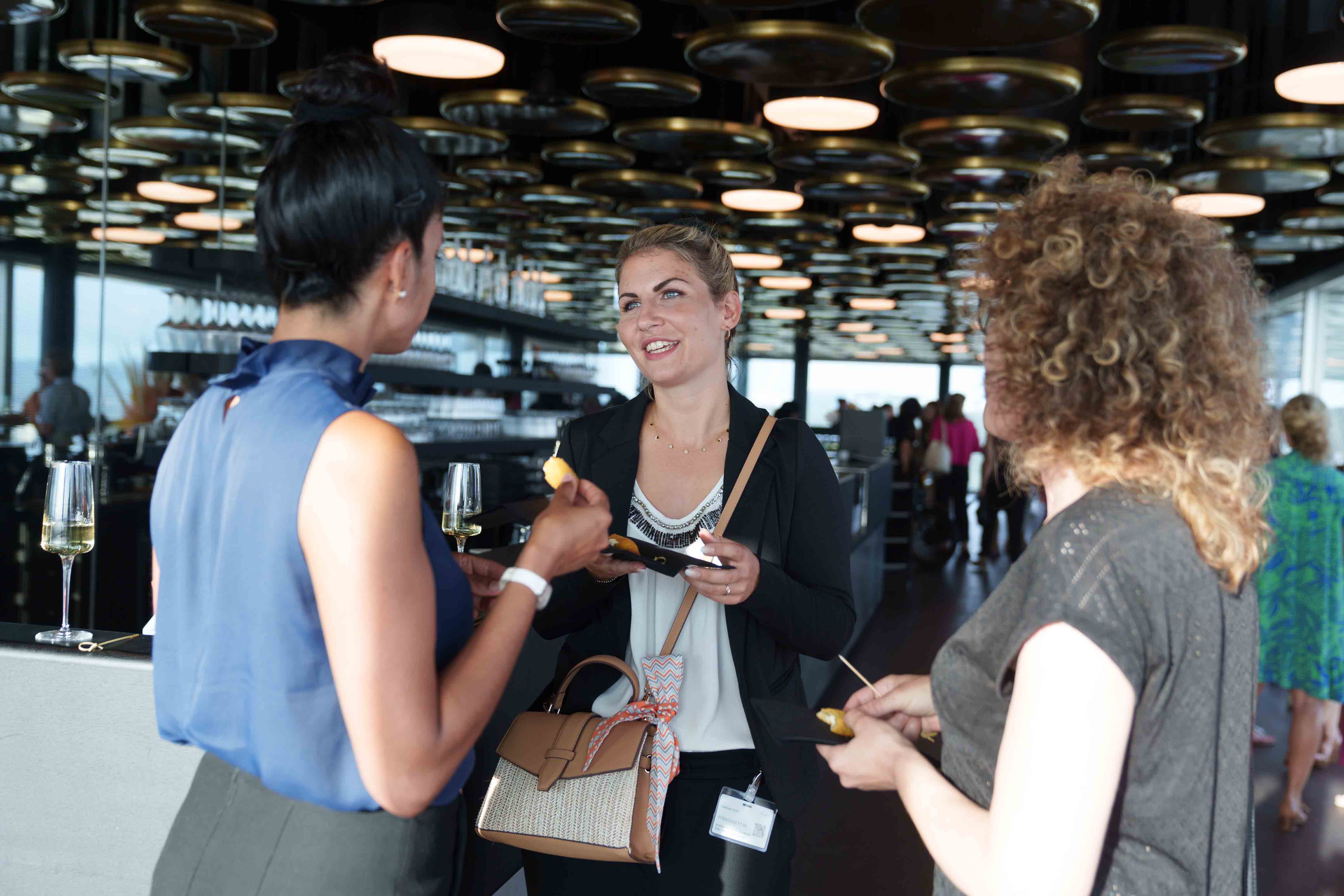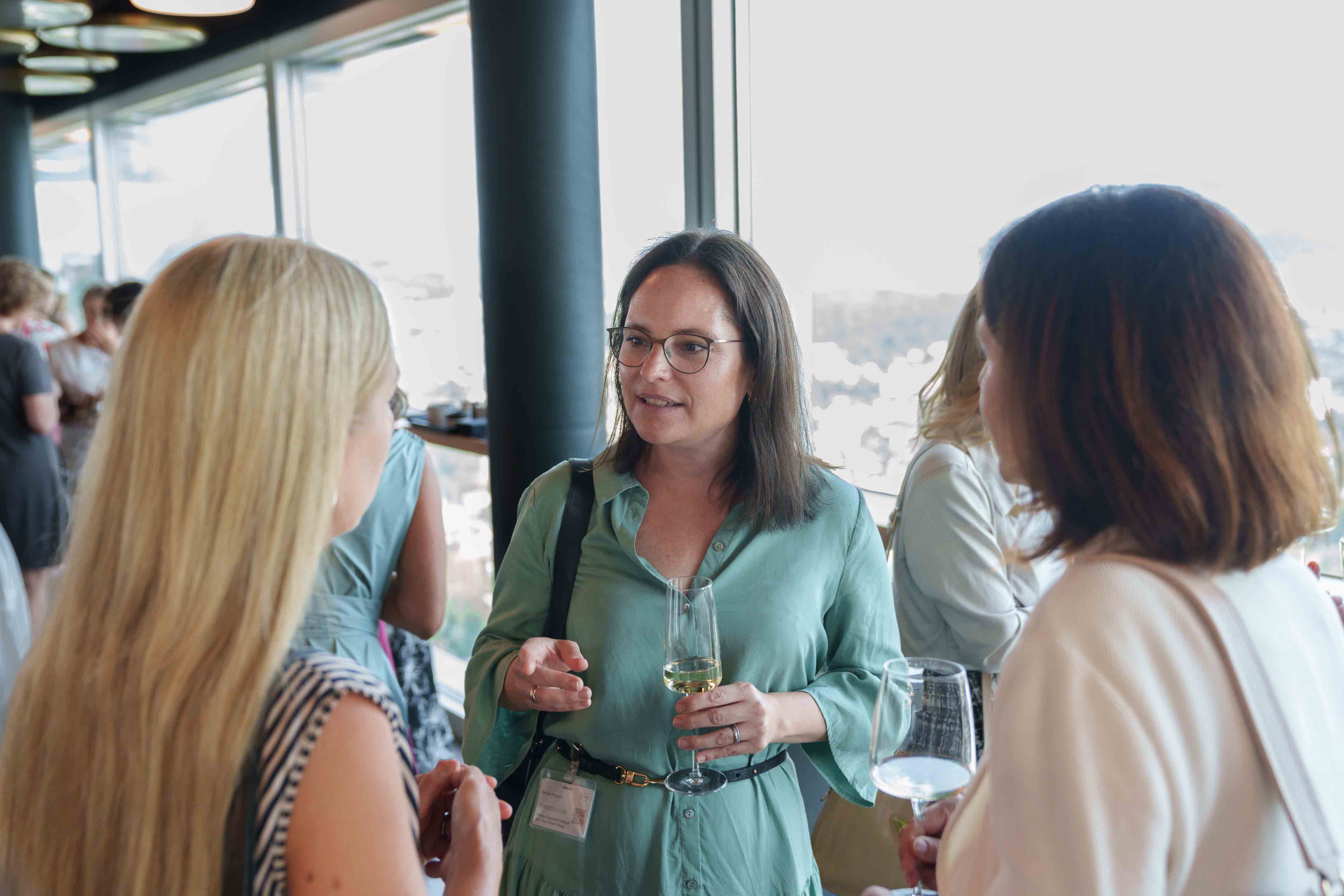 85 Frauen aus der Wirtschaft trafen sich an unserem Anlass «HKBB vernetzt» Women zum Networking. Der Afterwork-Event fand im Rochturm 2 über den Dächern Basels statt.