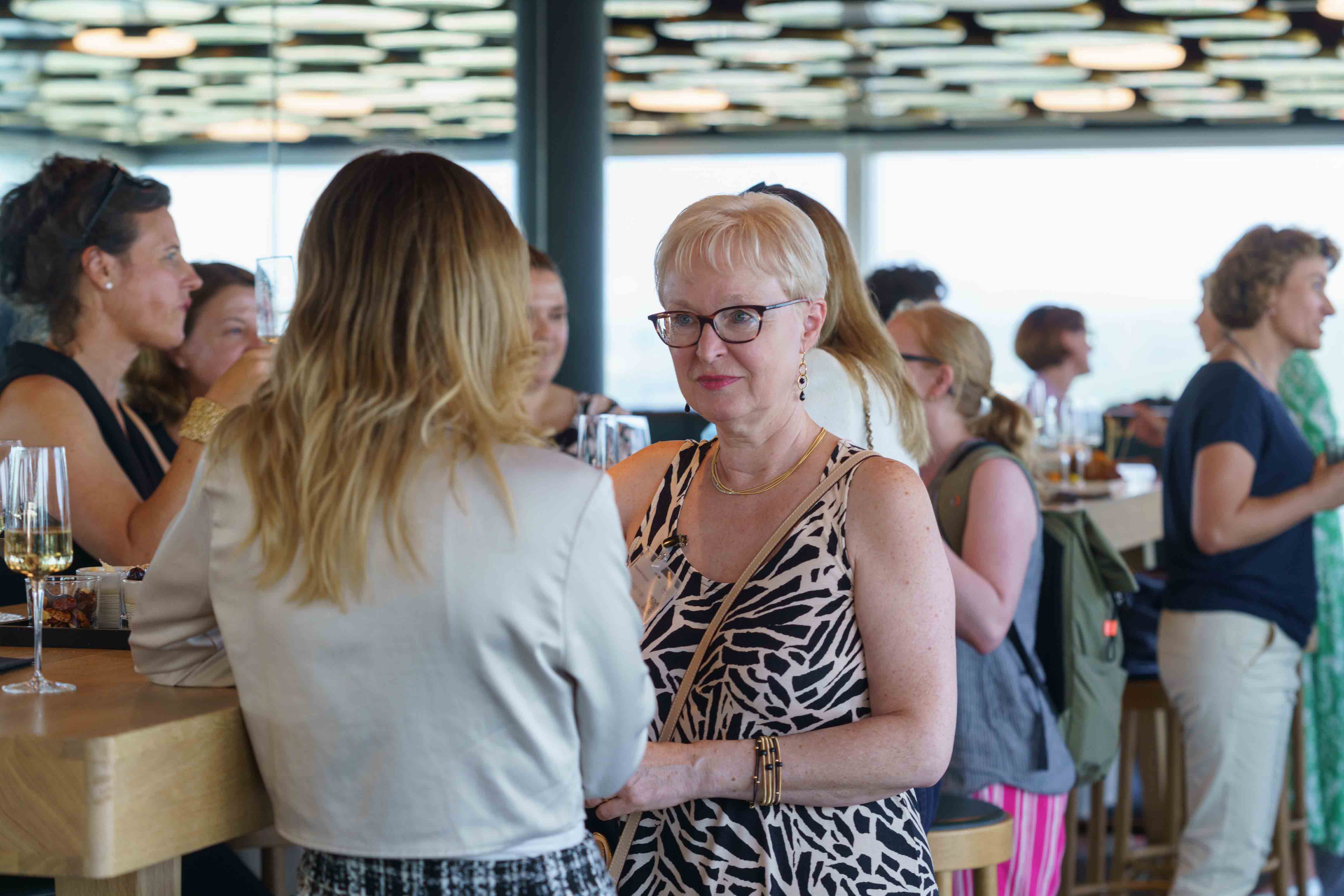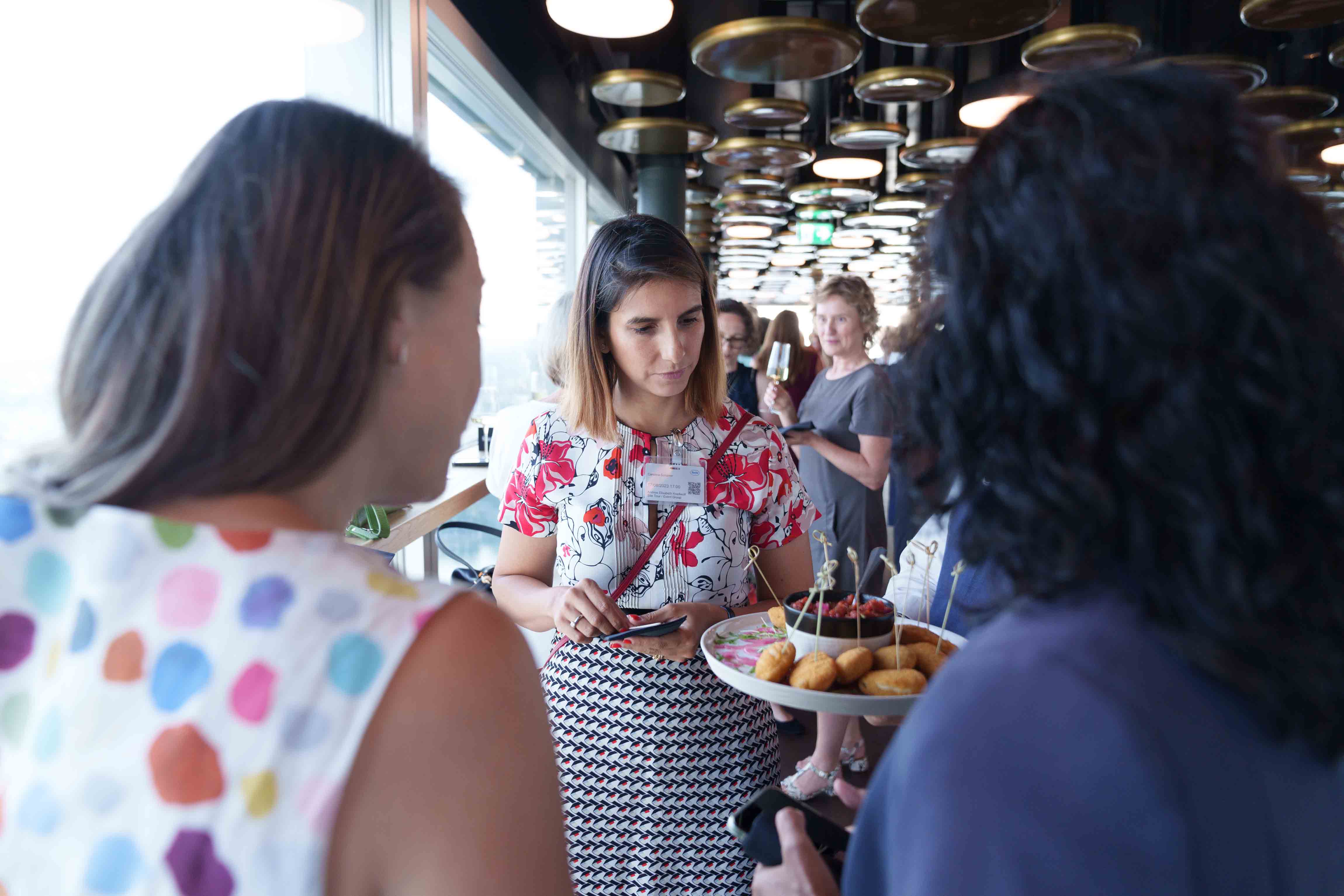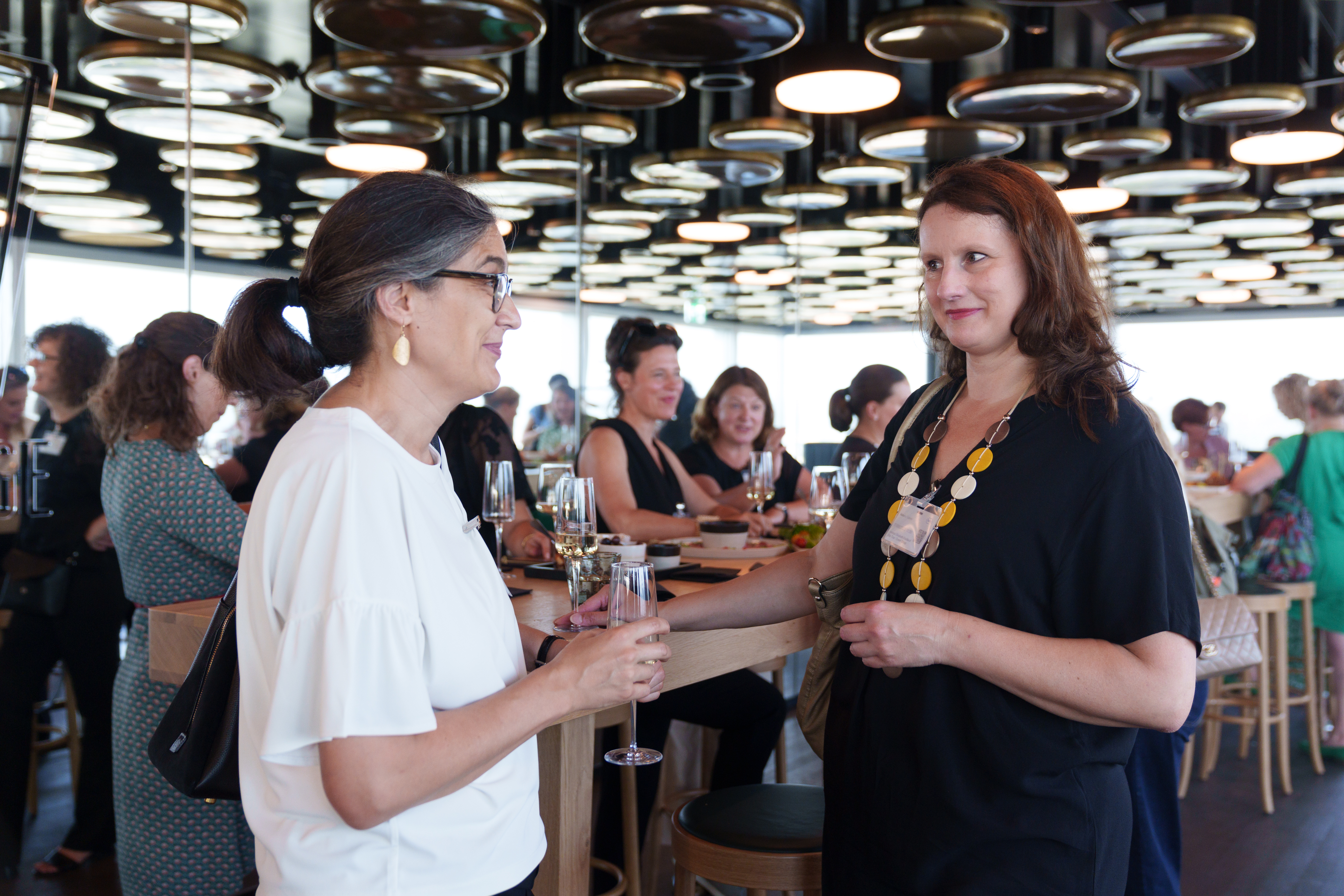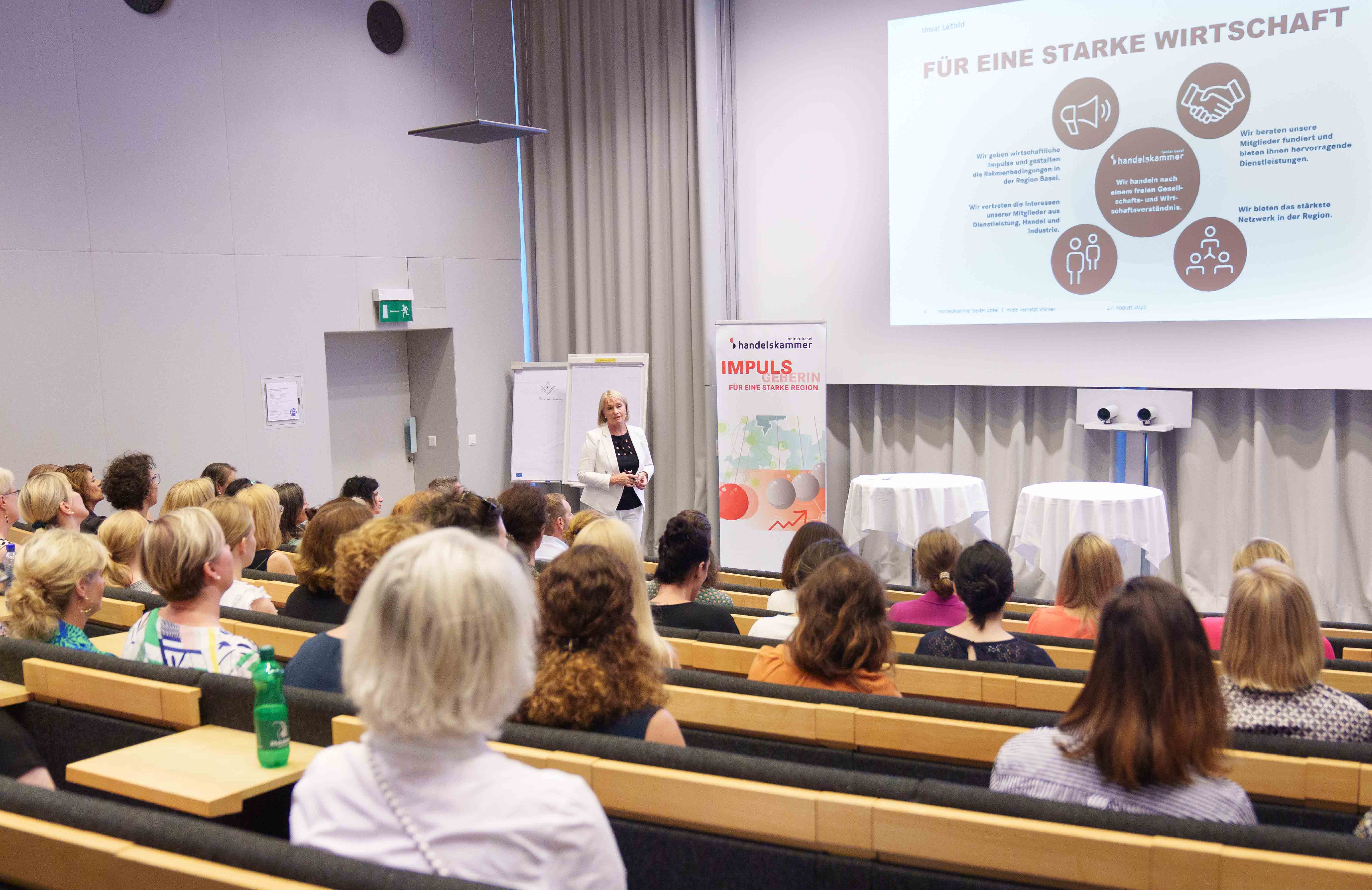 85 Frauen aus der Wirtschaft trafen sich an unserem Anlass «HKBB vernetzt» Women zum Networking. Der Afterwork-Event fand im Rochturm 2 über den Dächern Basels statt.