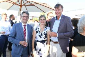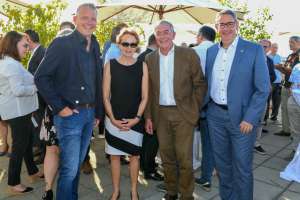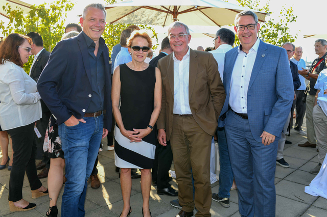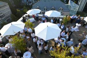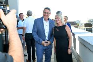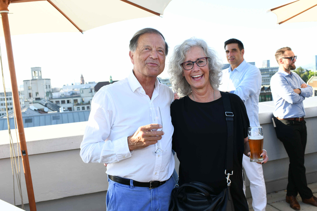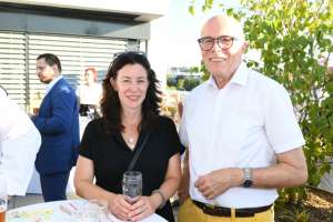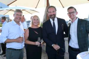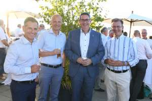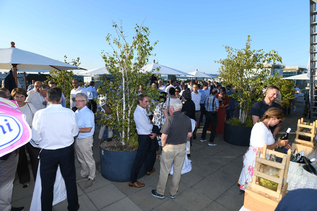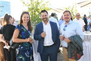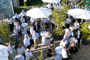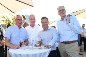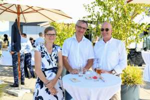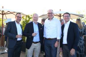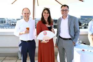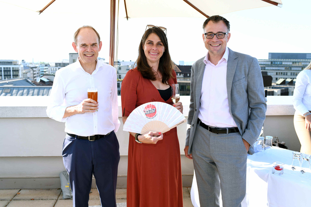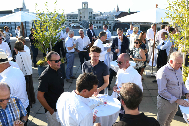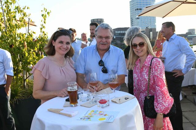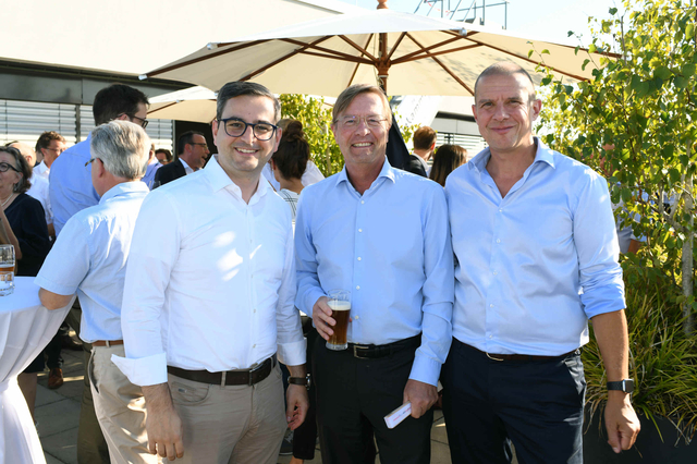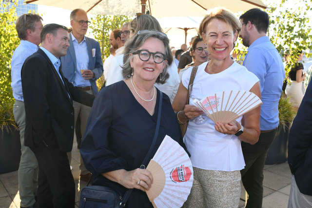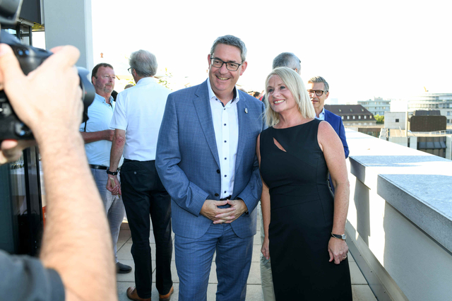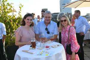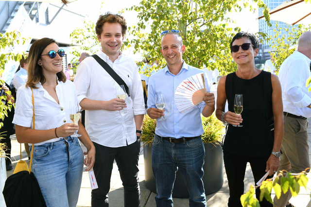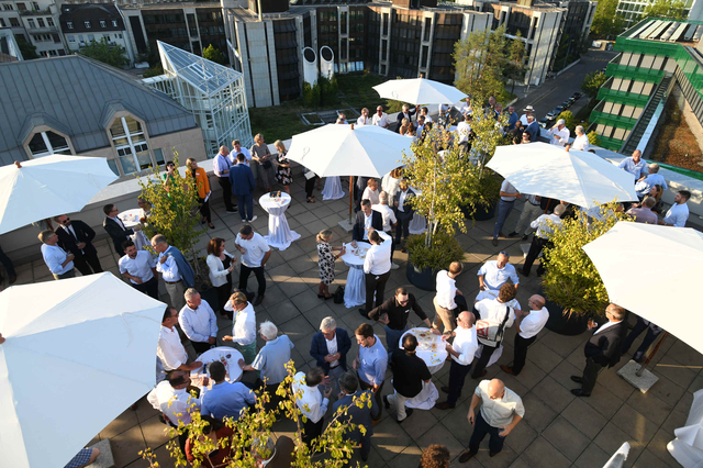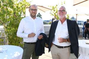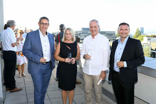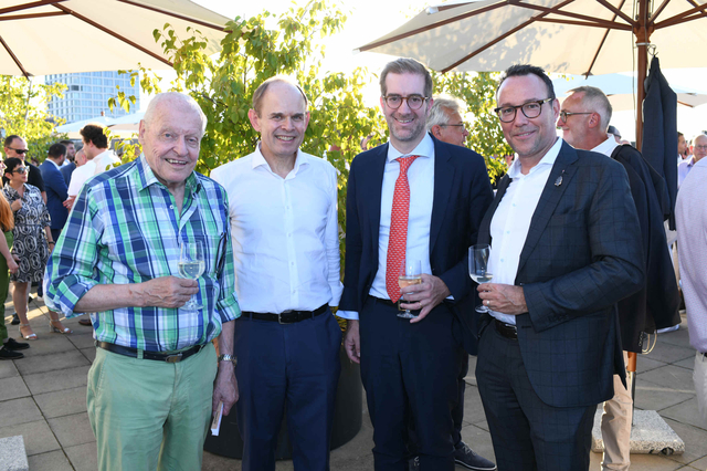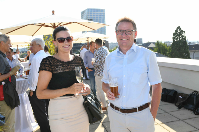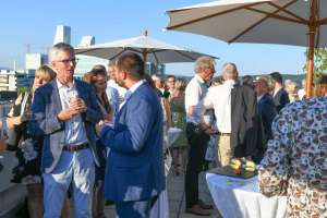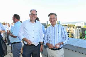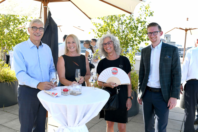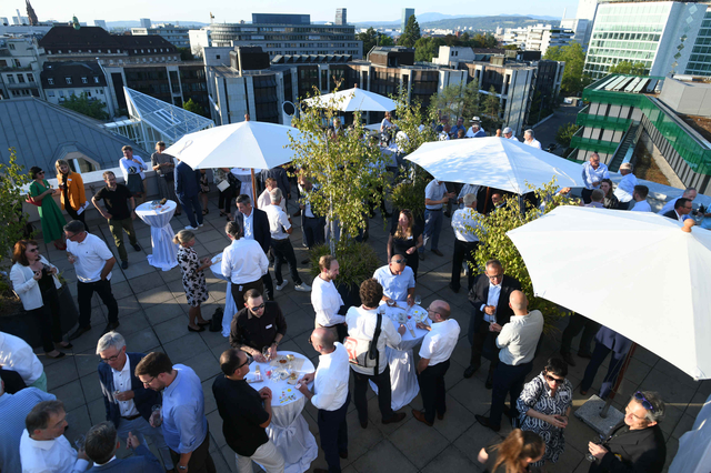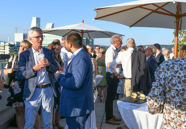 Persönlichkeiten aus Wirtschaft, Politik und Gesellschaft tauschten sich an unserem Sommerapéro über aktuelle Entwicklungen aus – in luftigen Höhen mit Blick auf die Basler Skyline.