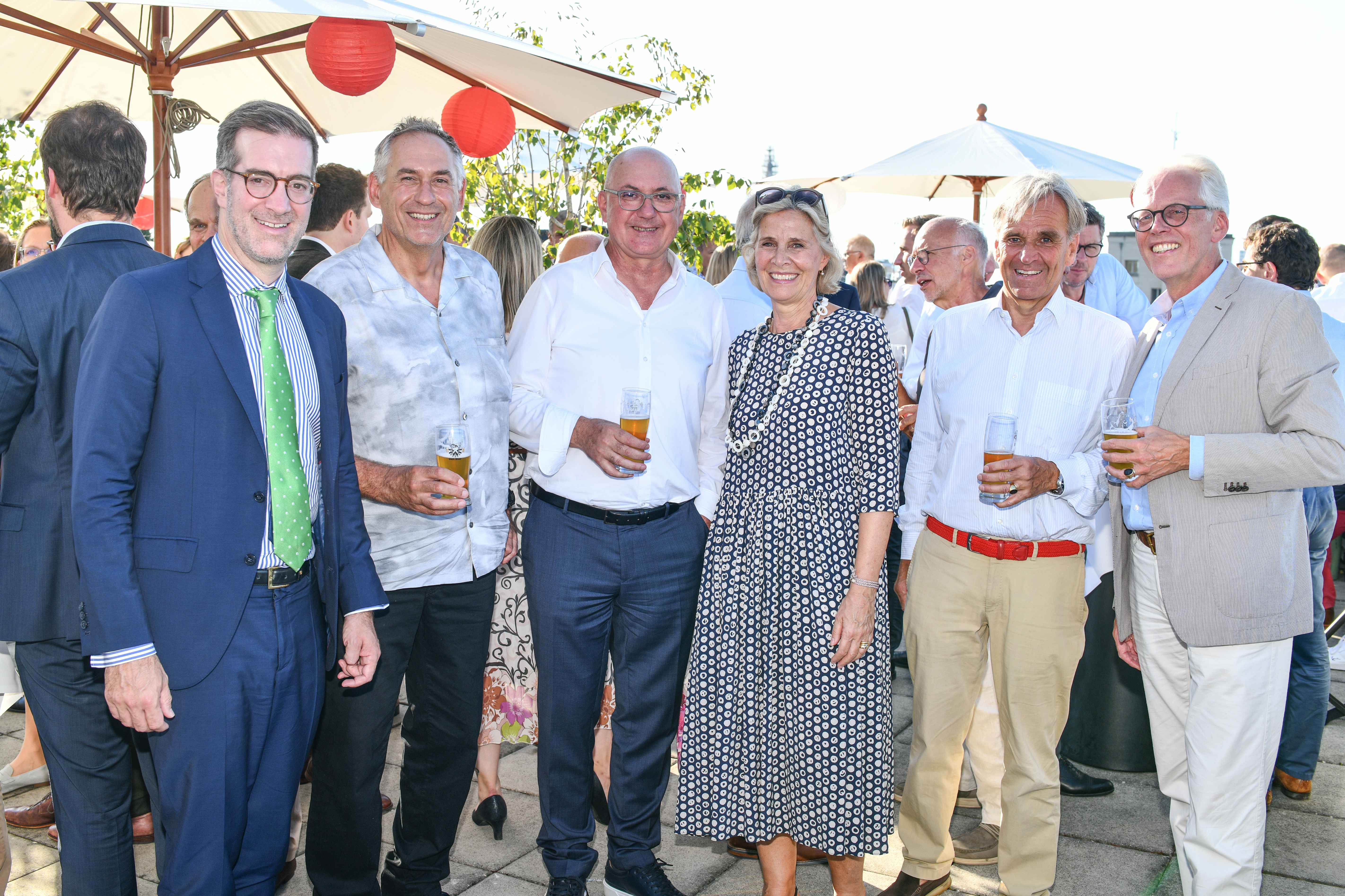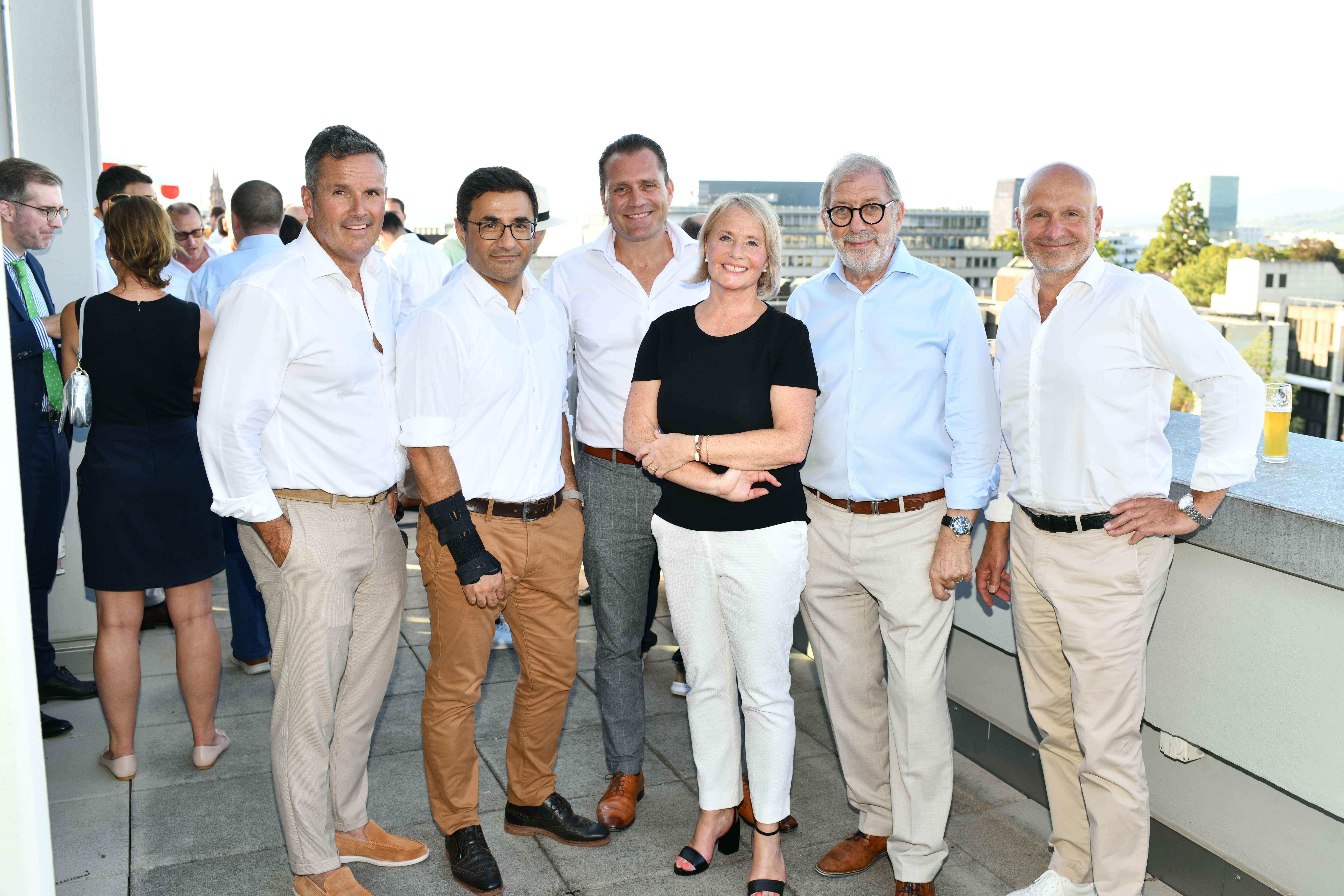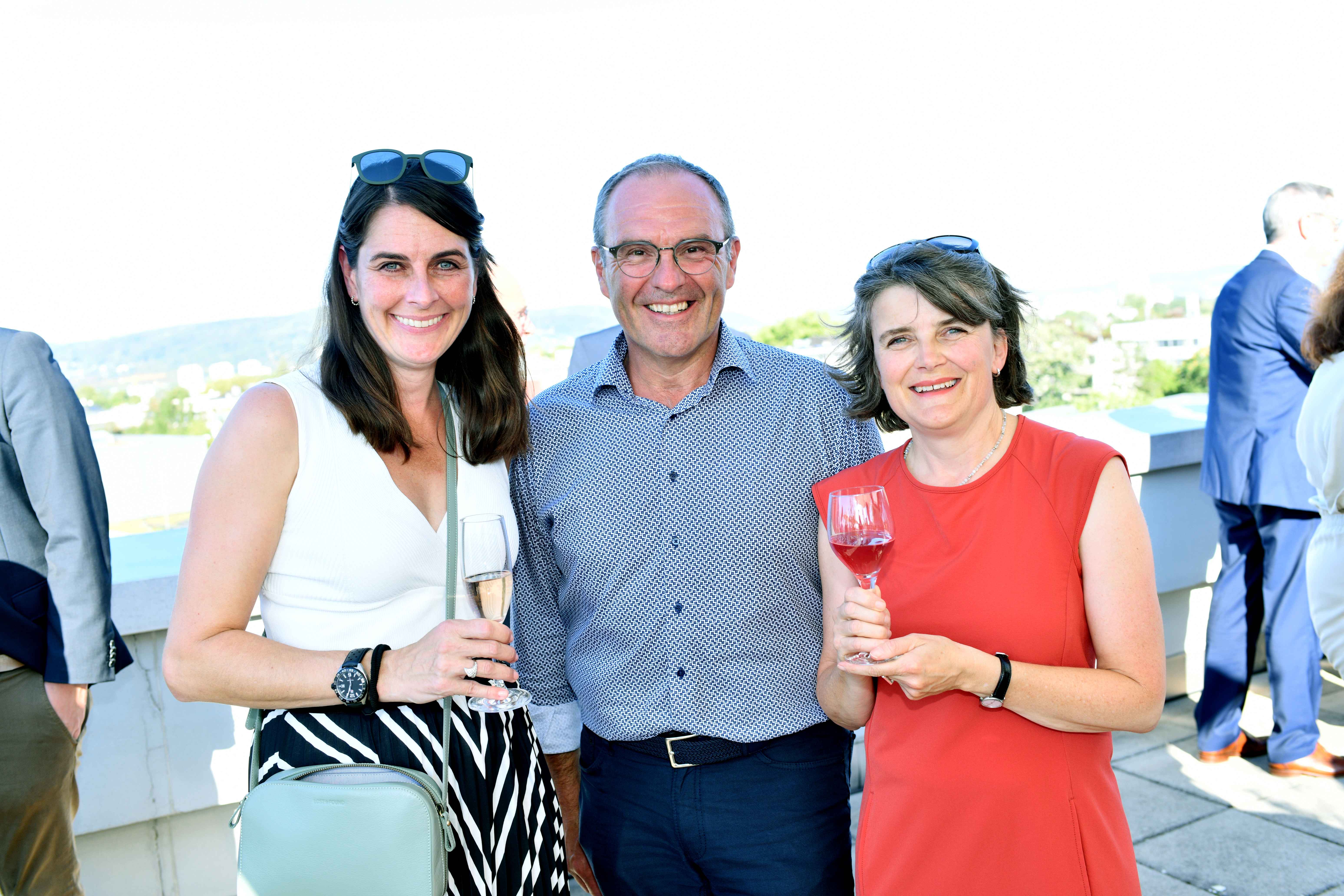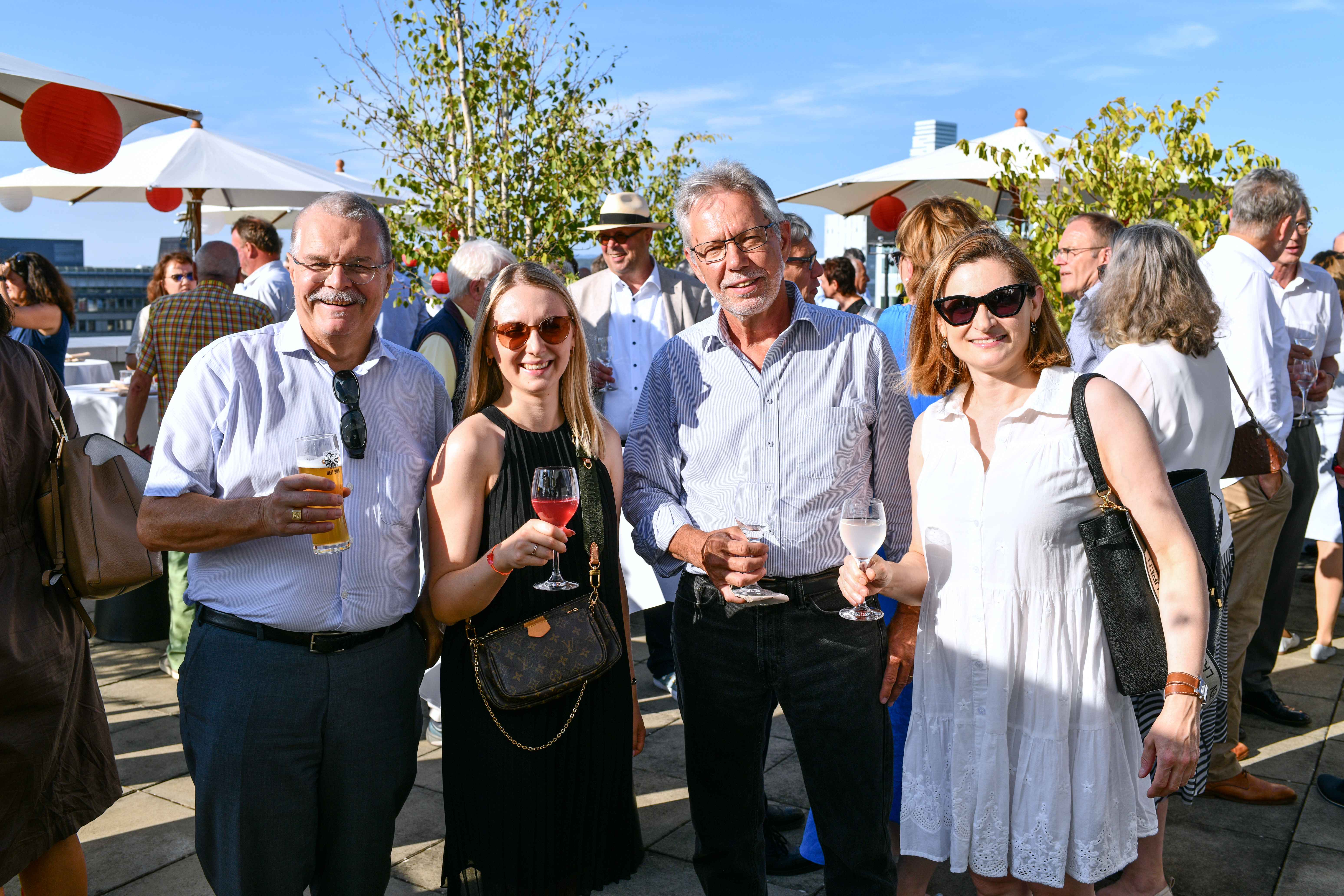 Über den Dächern von Basel trafen sich an unserem jährlichen Sommerapéro Vertreterinnen und Vertreter aus Wirtschaft und Politik zum Austausch.