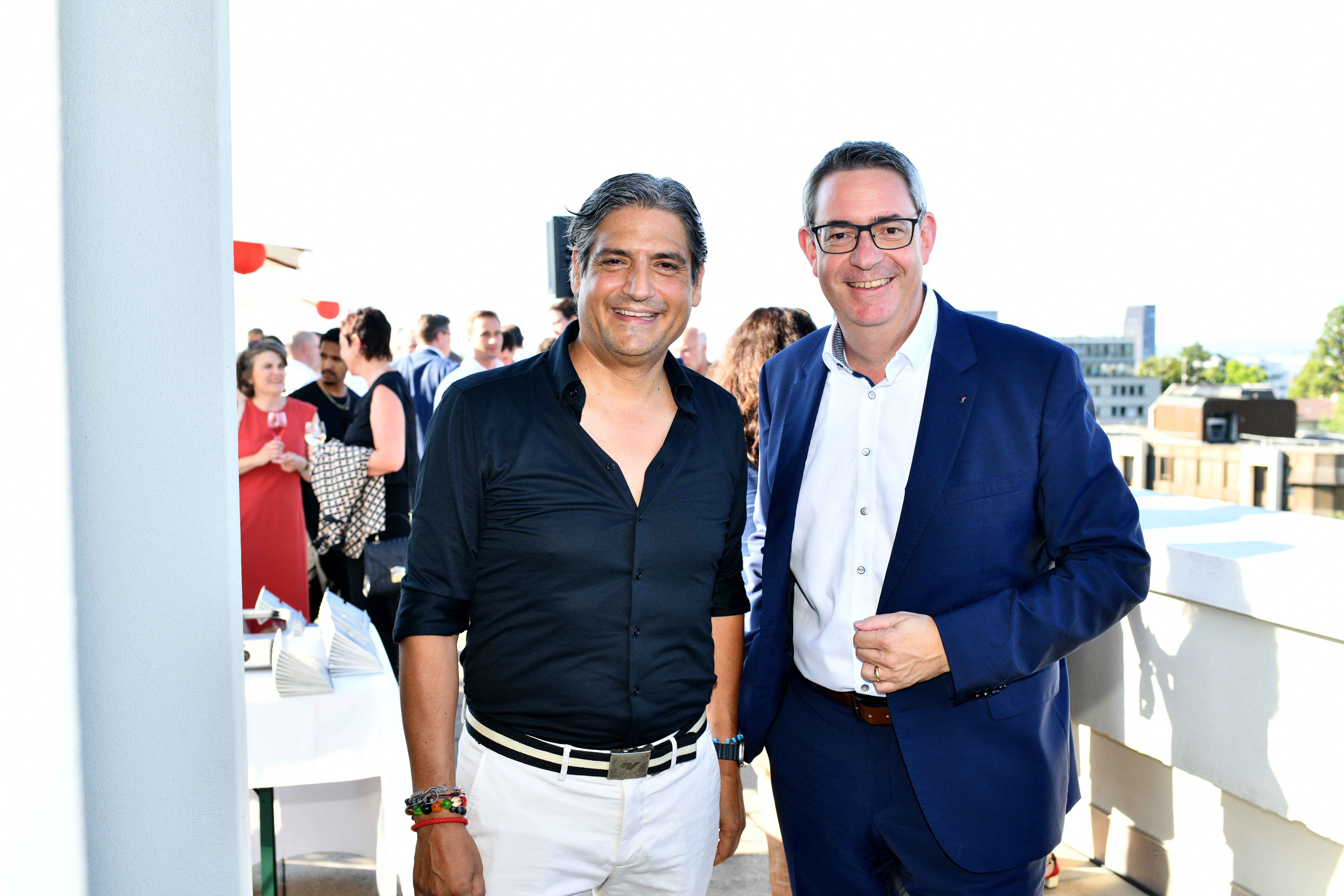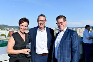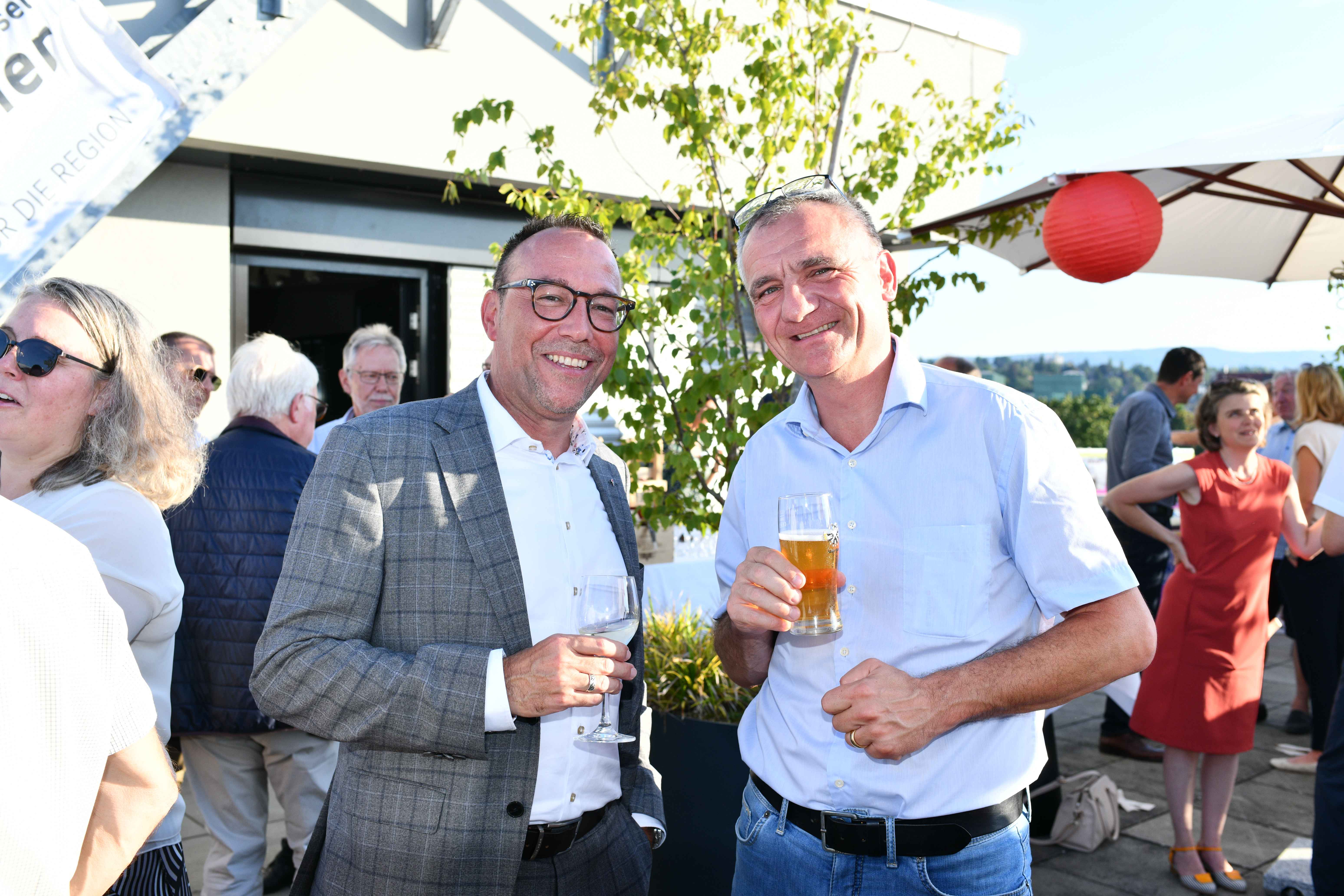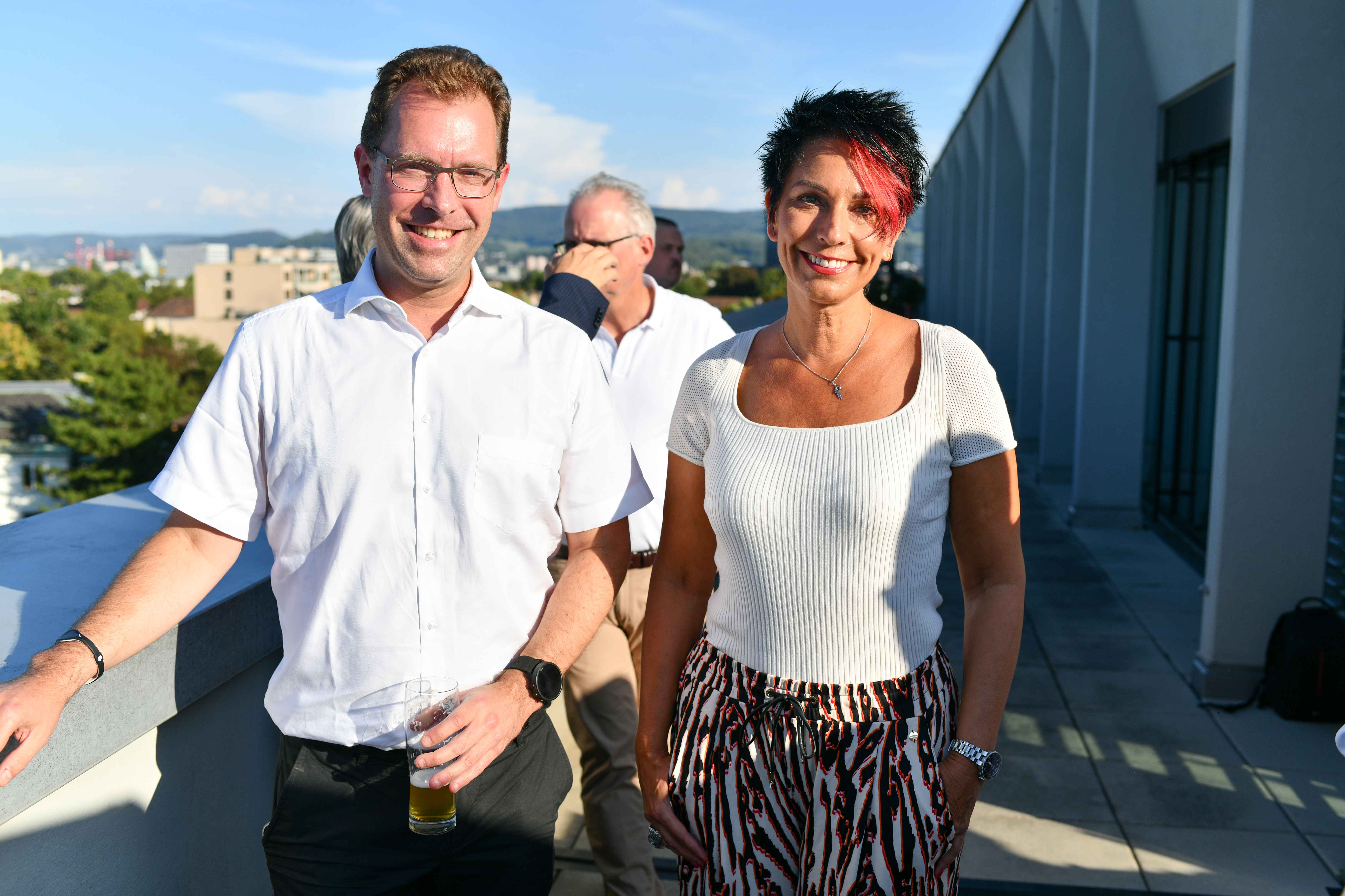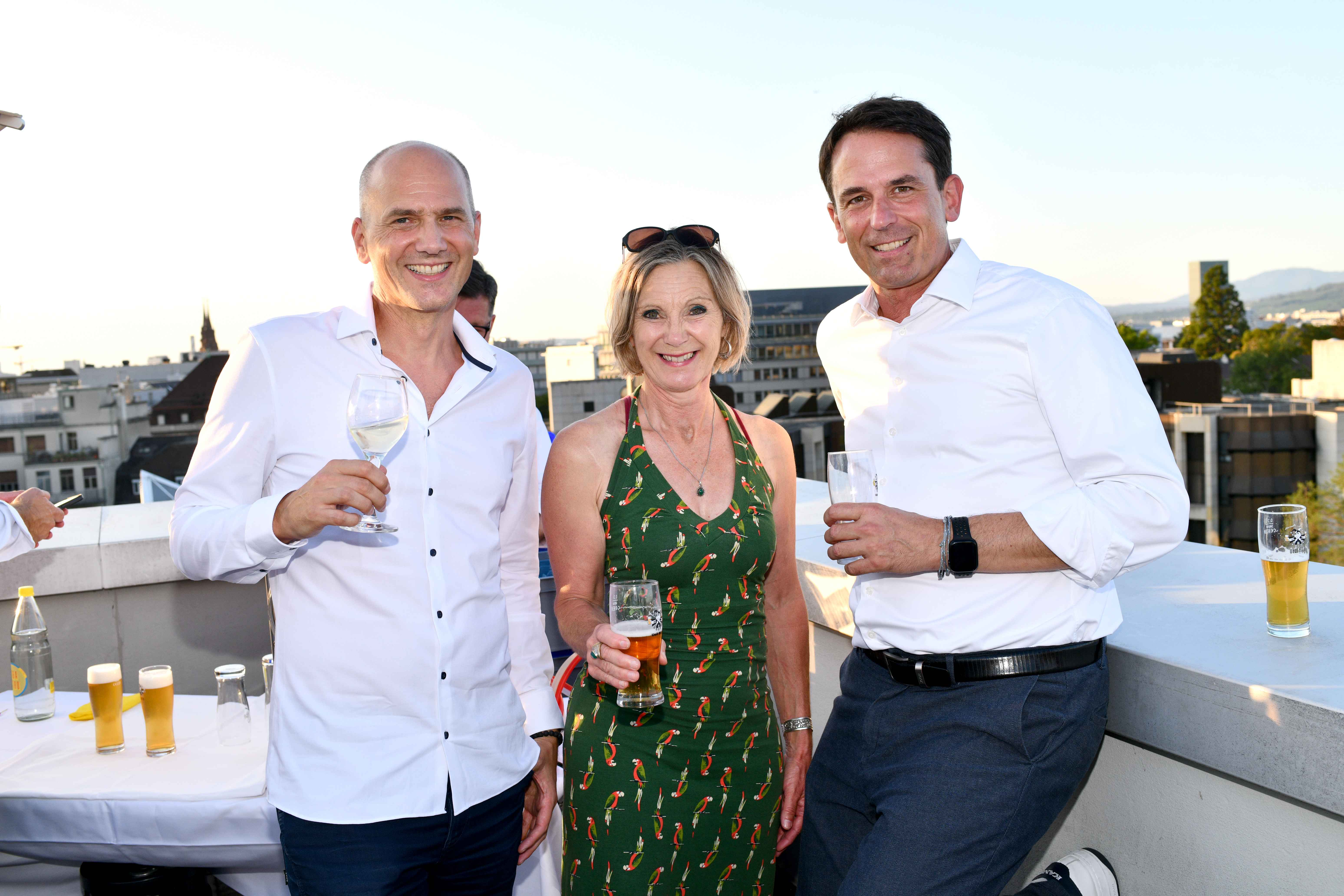 Über den Dächern von Basel trafen sich an unserem jährlichen Sommerapéro Vertreterinnen und Vertreter aus Wirtschaft und Politik zum Austausch.