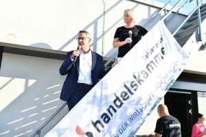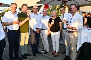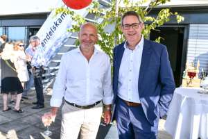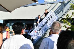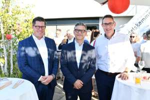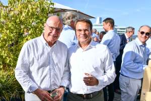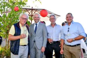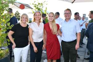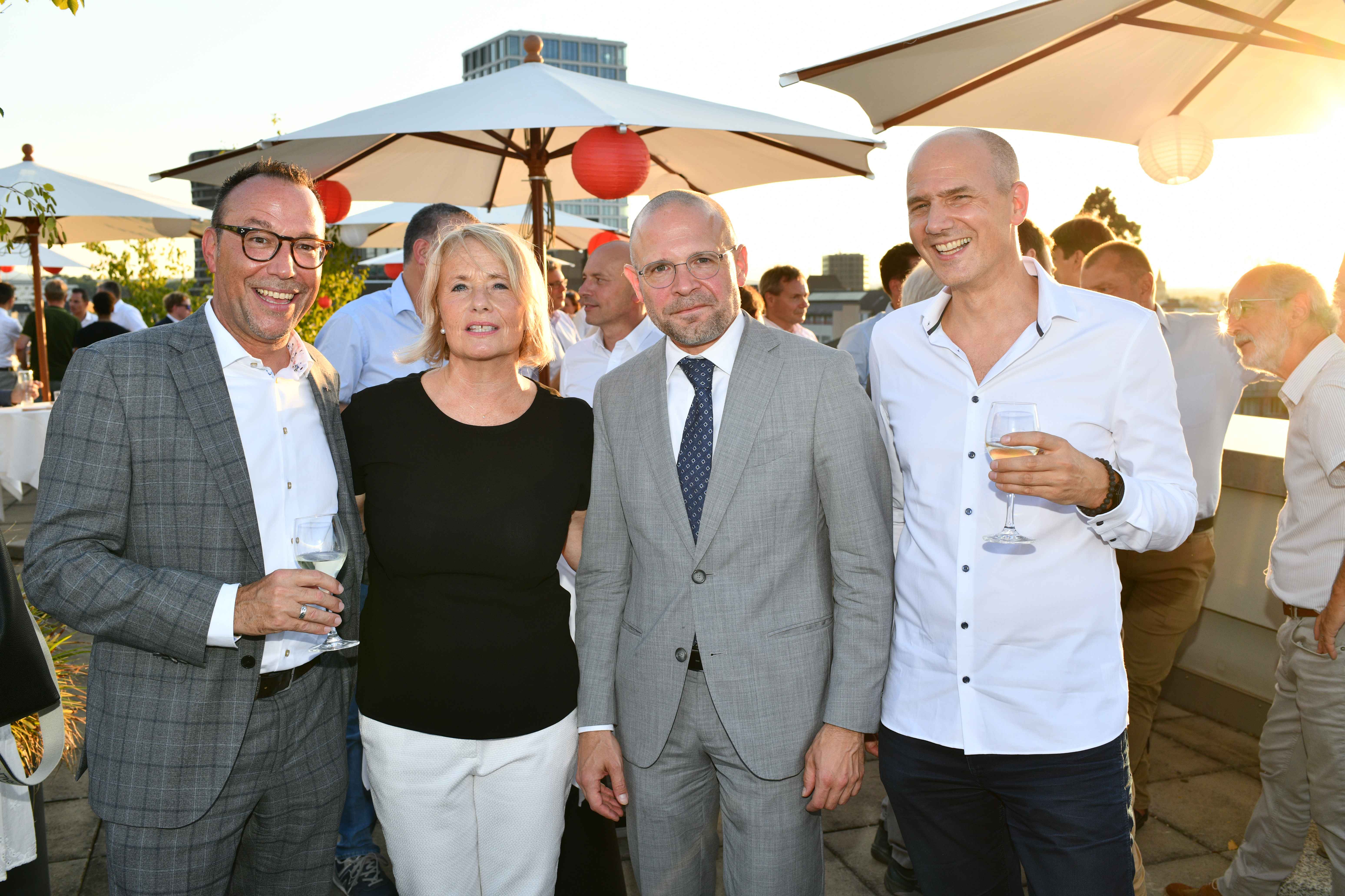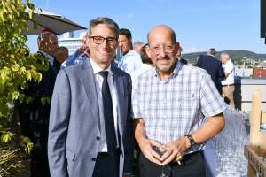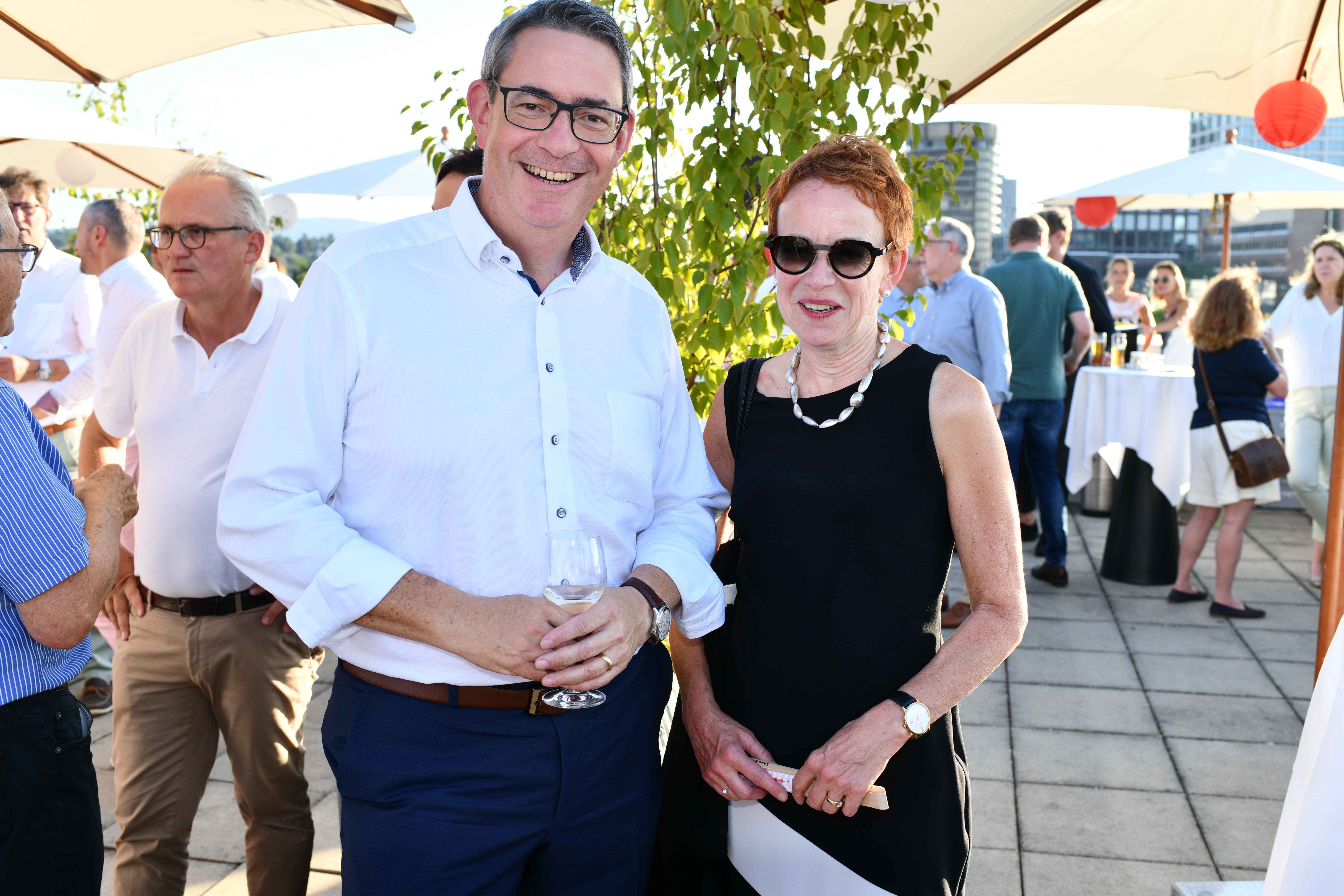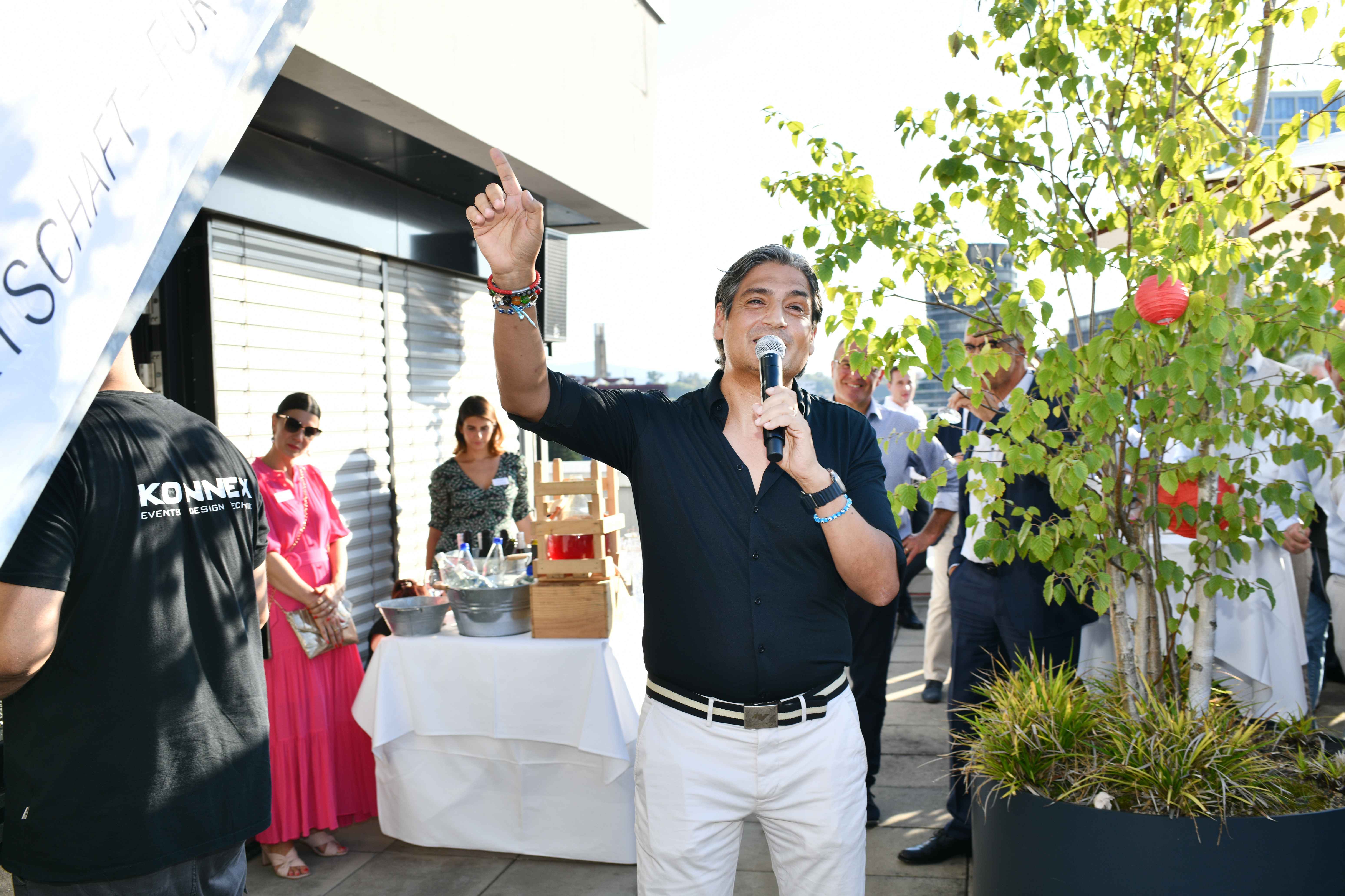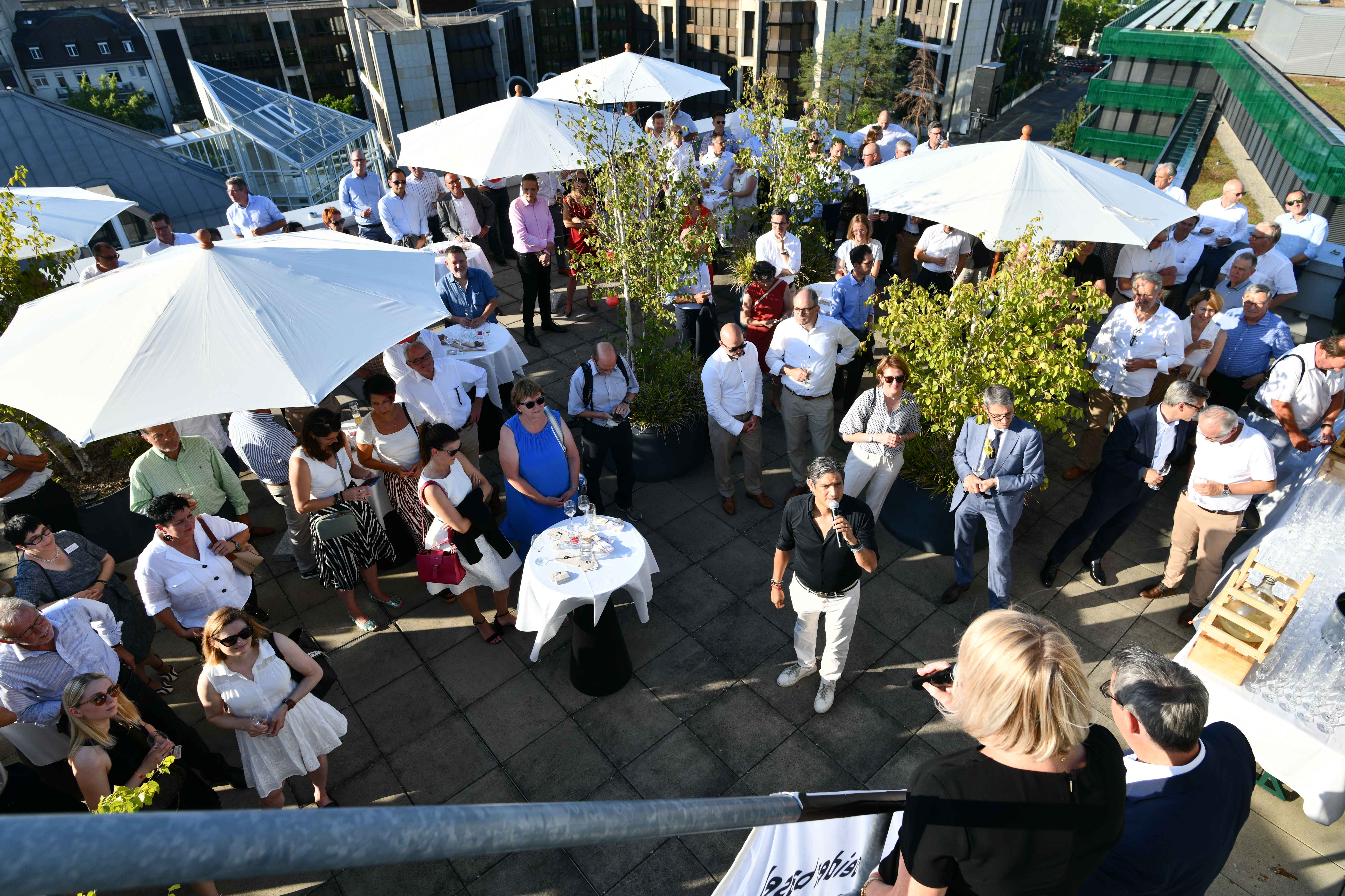 Über den Dächern von Basel trafen sich an unserem jährlichen Sommerapéro Vertreterinnen und Vertreter aus Wirtschaft und Politik zum Austausch.