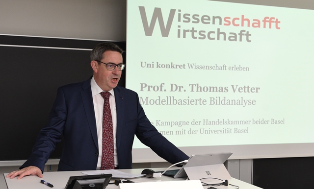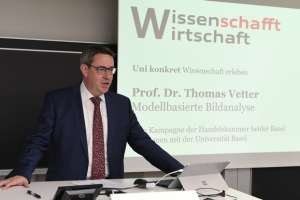 Bei der ersten Veranstaltung von «Uni konkret - Wissenschaft erleben» drehte sich alles um das Thema «Modellbasierte Bildanalyse». Die Arbeitsgruppe um Thomas Vetter ist für ihre wegweisenden Arbeiten zur Analyse und Synthese von Bildern des menschlichen Gesichts bekannt.