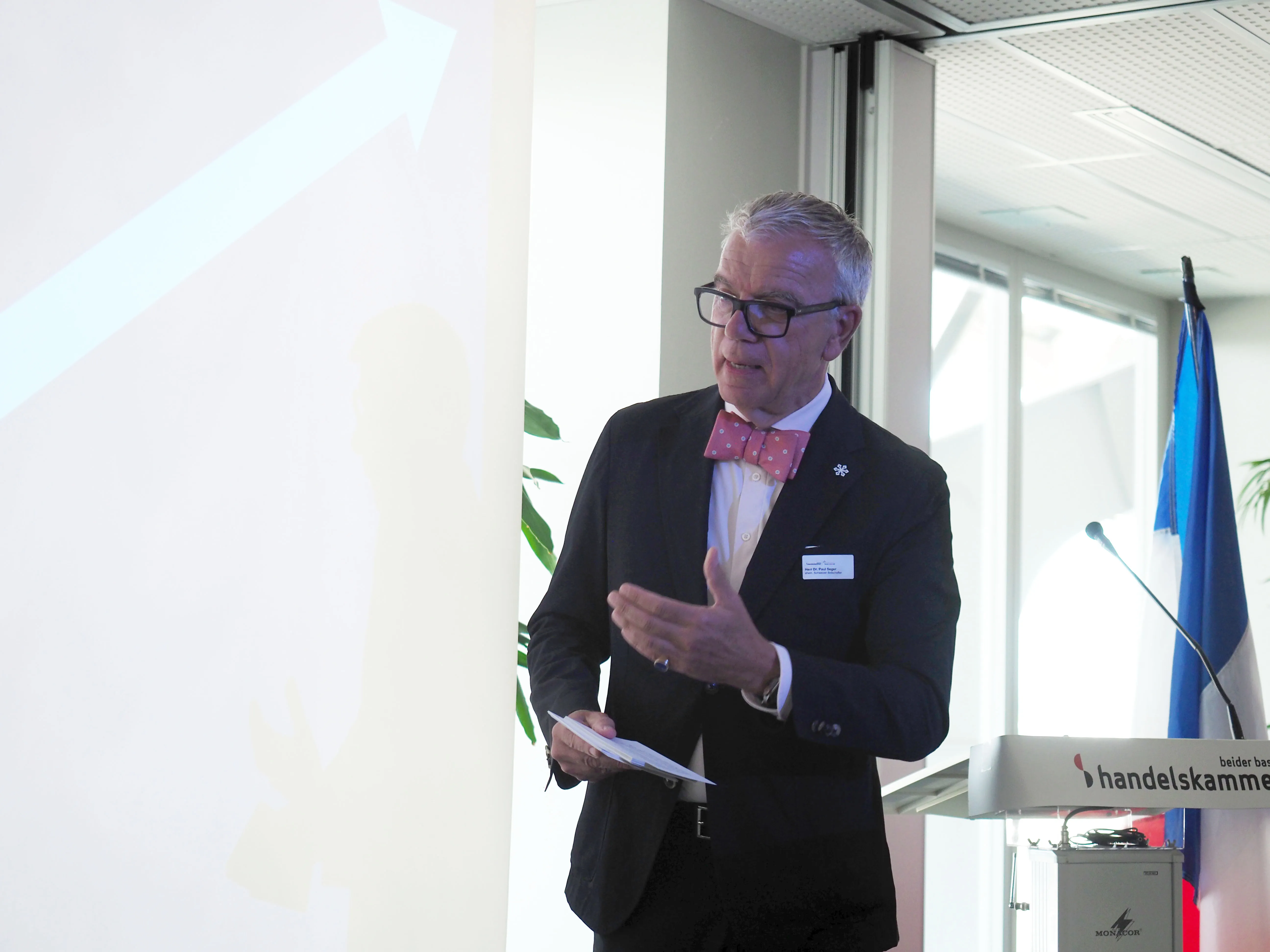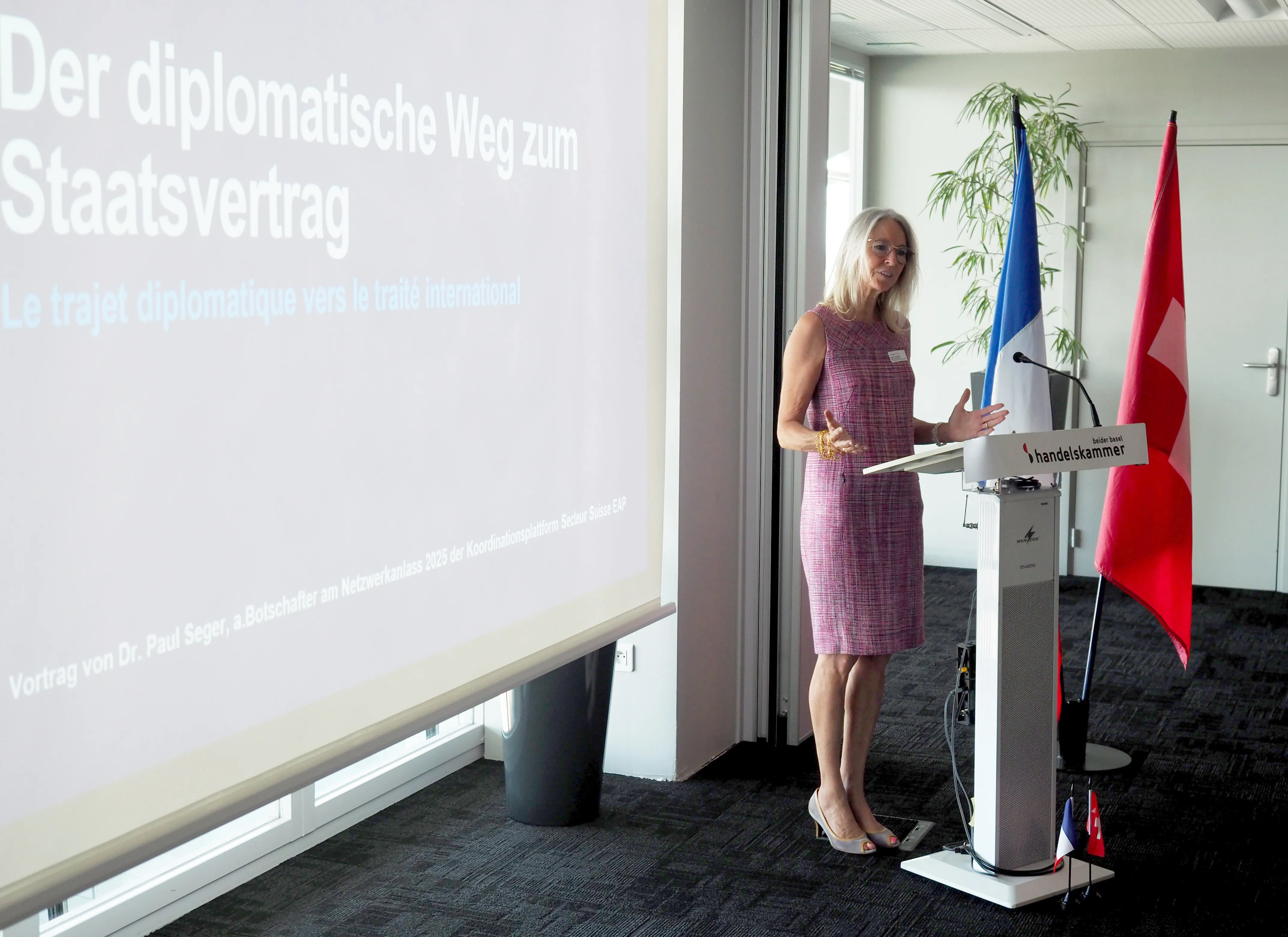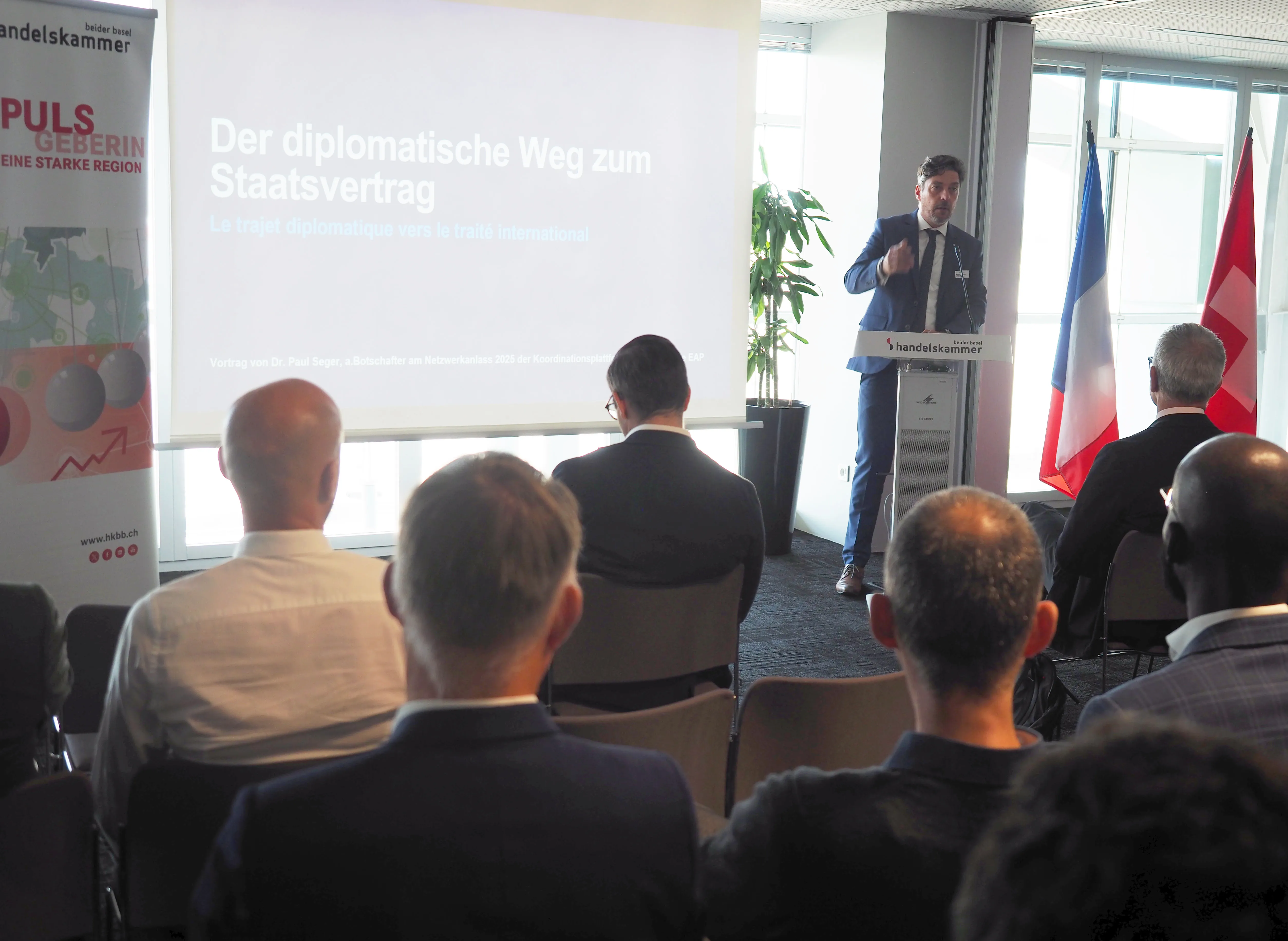 Über 5’150 Angestellte sind im Schweizer Sektor des EuroAirport Basel-Mulhouse tätig. Welches Arbeitsrecht für sie anwendbar ist, ist seit langem Gegenstand von Gesprächen und Rechtsverfahren. Die «Koordinationsplattform Secteur Suisse EAP» der Handelskammer beider Basel engagiert sich seit vielen Jahren für einen Staatsvertrag zwischen der Schweiz und Frankreich, der das anwendbare Arbeitsrecht regelt. Am diesjährigen Netzwerkanlass führte der ehemalige Schweizer Botschafter Dr. Paul R. Seger durch die einzelnen Schritte, die es für das Zustandekommen eines Staatsvertrages auf diplomatischer Ebene braucht.