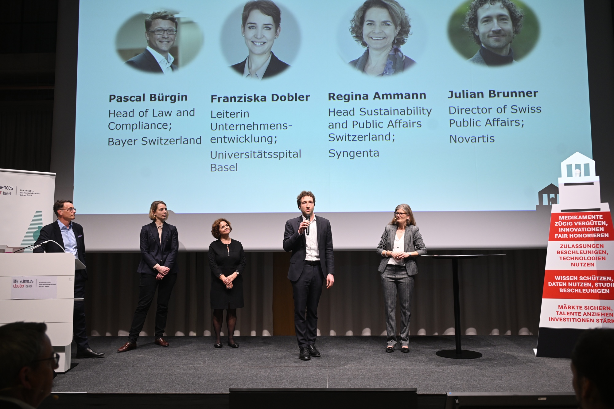 An unserem Life Sciences Cluster Forum übergaben wir BAG-Direktorin Anne Lévy und Ronald Indergand, Leiter Direktion für Wirtschaftspolitik SECO unseren Forderungskatalog für eine nationale Life Sciences-Strategie. Wir fordern rasche Reformen, um die internationale Wettbewerbsfähigkeit der Schweiz dank einer starken Life Sciences-Industrie zu sichern. Insbesondere fordern wir schnellere Zugänge zu innovativen Therapien und Lösungen, effizientere klinische Prozesse und international anschlussfähige regulatorische Rahmenbedingungen.