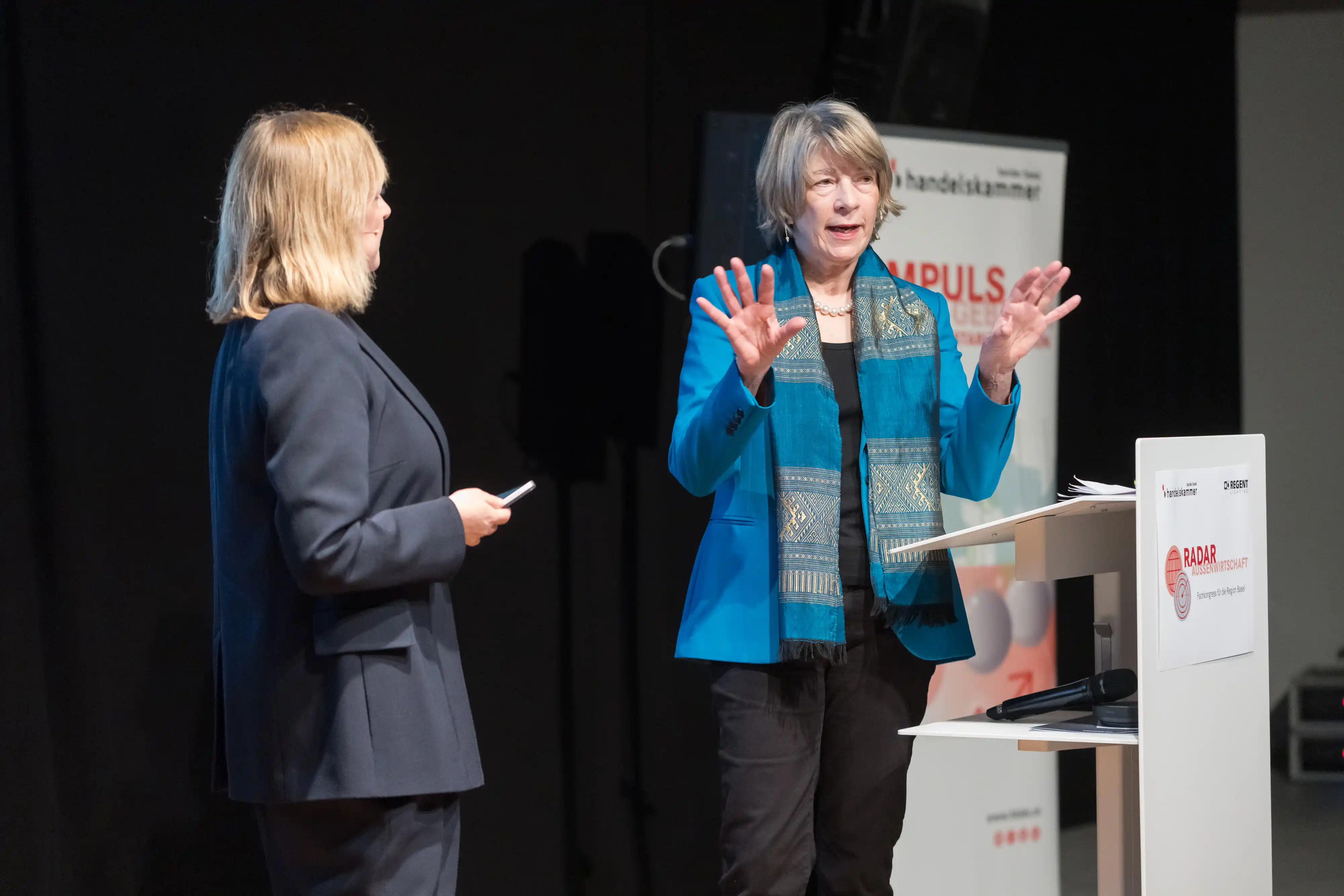 Handelsexperte Prof. Simon Evenett, IMD Lausanne, und Strategieberaterin Barbara Kux, inspirierten uns mit ihren Impulsen. Martin Hirzel, CEO Swissmem, Prof. Dr. Philipp Aerni, Director Center for Corporate Responsibility and Sustainability, Marc Bernitt, Senior Vice President Kühne+Nagel Schweiz AG und Florian Regli, Global Head of Tax and Insurance F. Hoffmann-La Roche AG, diskutierten auf den Podien.