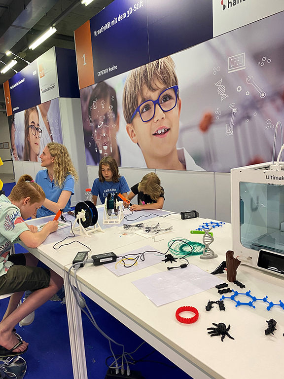 Steckt in Ihrem Kind vielleicht ein künftiger Arzt? In der Halle 4.1 der Messe Basel werden zwar keine Blinddärme operiert, wenn aber die Kinder mit kleinsten Instrumenten die Kerne aus einer Paprika operieren, und das ganze auf einem Screen beobachten wie ein richtiger Arzt, kommen sie diesem Gefühl schon sehr nahe. Oder steckt in Ihrem Kind eine Programmiererin? Wenn die Kinder ihren eigenen Videogame-Charakter entwerfen und ihn spielen lassen oder einem Roboter Bewegungen beibringen, dann haben sie den ersten Schritt auf dem Weg zu einer MINT-Karriere gemacht.