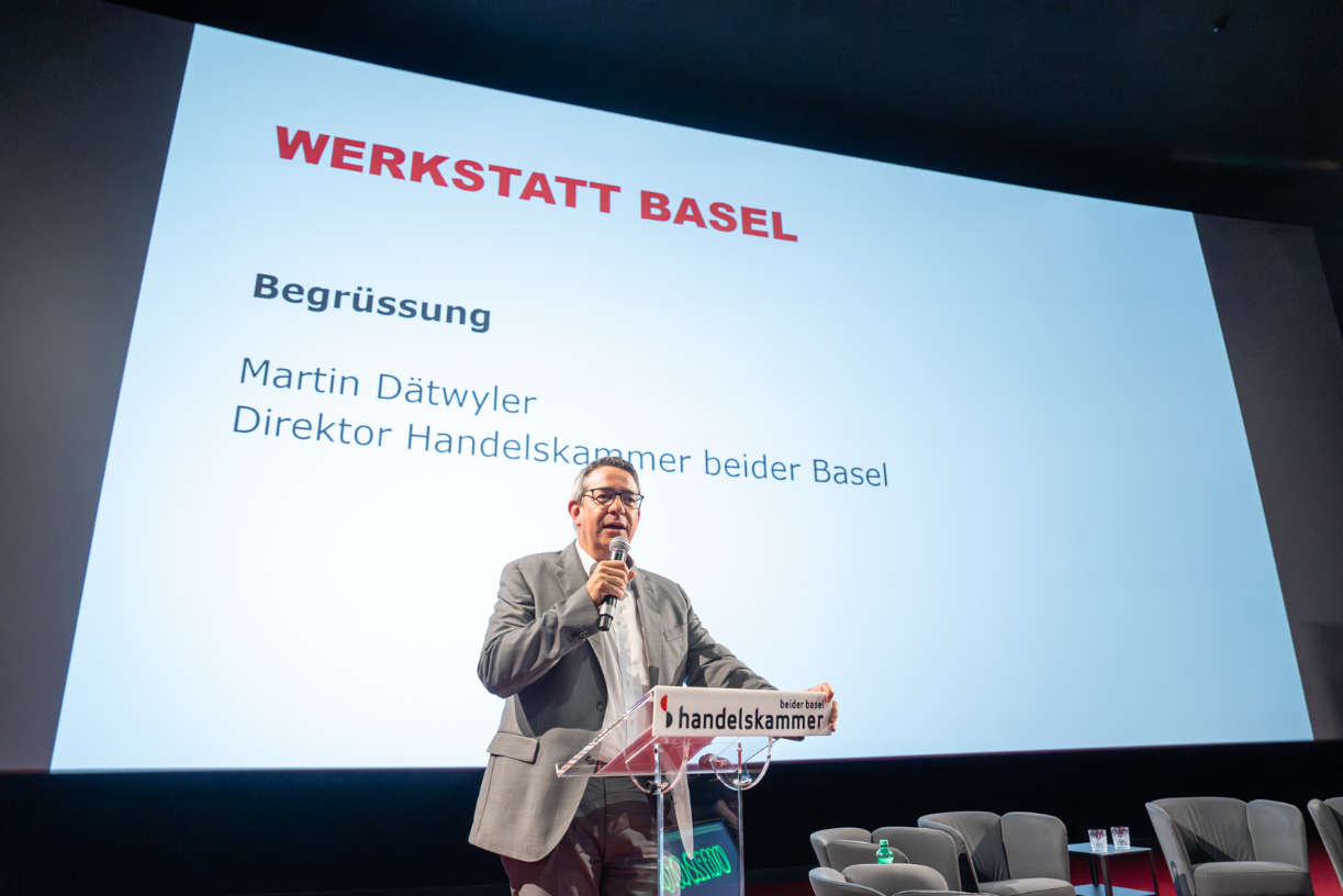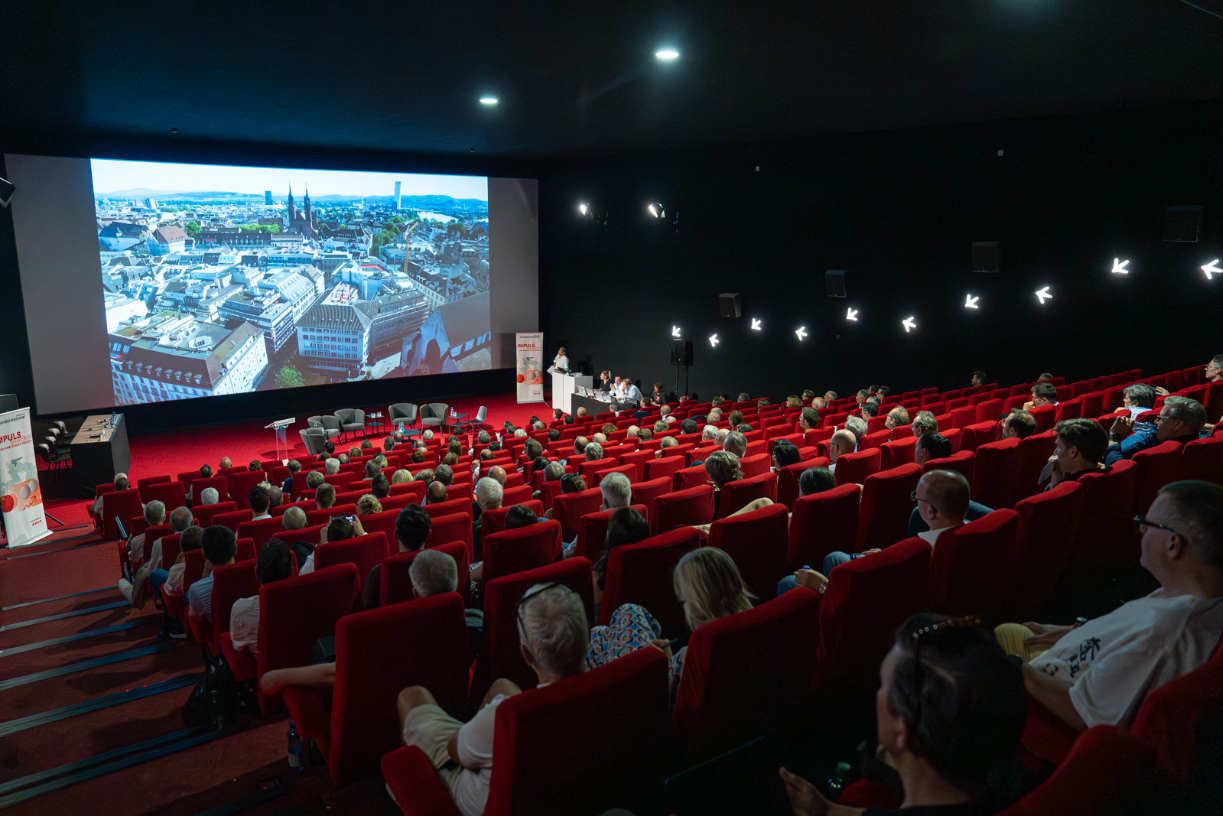 Unter gleissendem Sonnenschein begaben sich die zahlreichen Zuschauenden einmal mehr ins ehemalige Küchlin-Kino zum interaktiven Anlass «Werkstatt Basel» der Handelskammer beider Basel. Diesmal dreht sich alles um Energietechnologien der Zukunft. Nach der Begrüssung durch Handelskammer-Direktor Martin Dätwyler rief Moderator Dani von Wattenwyl sogleich die erste Publikumsumfrage aus: Seine Frage, ob Temperaturen von über dreissig Grad als angenehm wahrgenommen werden, beantworteten 52 Prozent der Teilnehmenden mit Ja. Gute Voraussetzungen für hitzige Debatten also – dennoch startete der Abend mit kühlen Fakten.