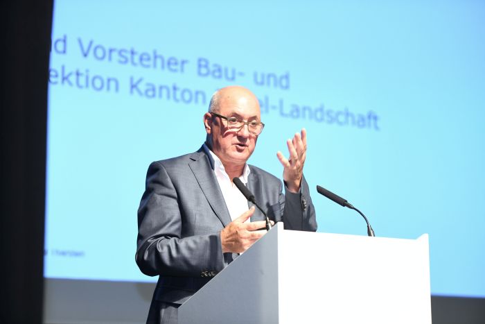 Aus Bern grüssten zum Auftakt die Nationalrätinnen Daniela Schneeberger und Sandra Sollberger sowie Nationalrat Christian Imark per Videobotschaft und bekannten sich zu ihrer Unterstützung unserer Anliegen. Im Laufe der Inputreferate wurde klar – in Sachen Mobilität bewegt sich viel. Im Vergleich zum ersten Mobilitätsforum Ende 2022 wurde beispielsweise eine Begleitgruppe zur Entwicklung eines Bahnersatzkonzeptes für die fünfmonatige Totalsperre der Bahnlinie im Jahr 2025 ins Leben gerufen und wie angekündigt die Korridorstudie zur Nationalstrasse 18 zwischen Basel und Delémont unter Mitwirkung der lokalen Akteure gestartet. Dass eine solche Studie durchgeführt wird, ist keine Selbstverständlichkeit, wie Jürg Röthlisberger, Direktor Bundesamt für Strassen ASTRA, ausführte - schweizweit gebe es deren nur drei. Unsere Region kommt mitunter dank dem Komitee N18 hier zum Zug. Röthlisberger erläuterte ferner die aktuellen Herausforderungen des Strassennetzes auf nationaler Ebene. Er sprach die fehlenden Redundanzen an, welche gerade bei Unterhaltsarbeiten zum Problem wird. Zudem zeigte er auf, wie die Strasse als kosteneffizienter Verkehrsträger künftig sicherer und umweltfreundlicher wird und deshalb zentraler Pfeiler der Mobilität bleibt.