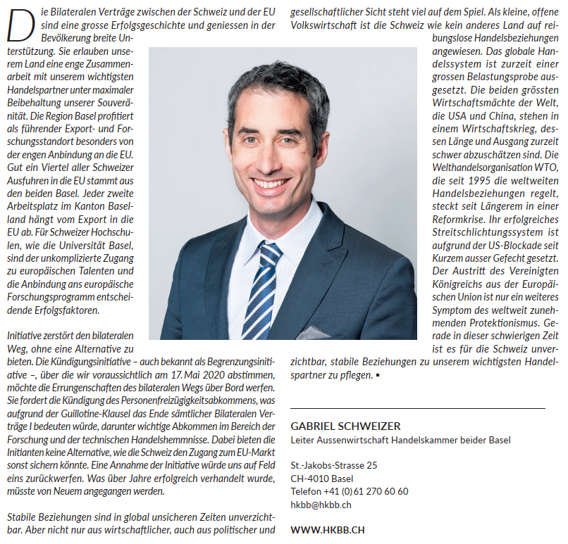 Kolumne von Gabriel Schweizer, Leiter Aussenwirtschaft, im Geschäftsführer Basel: