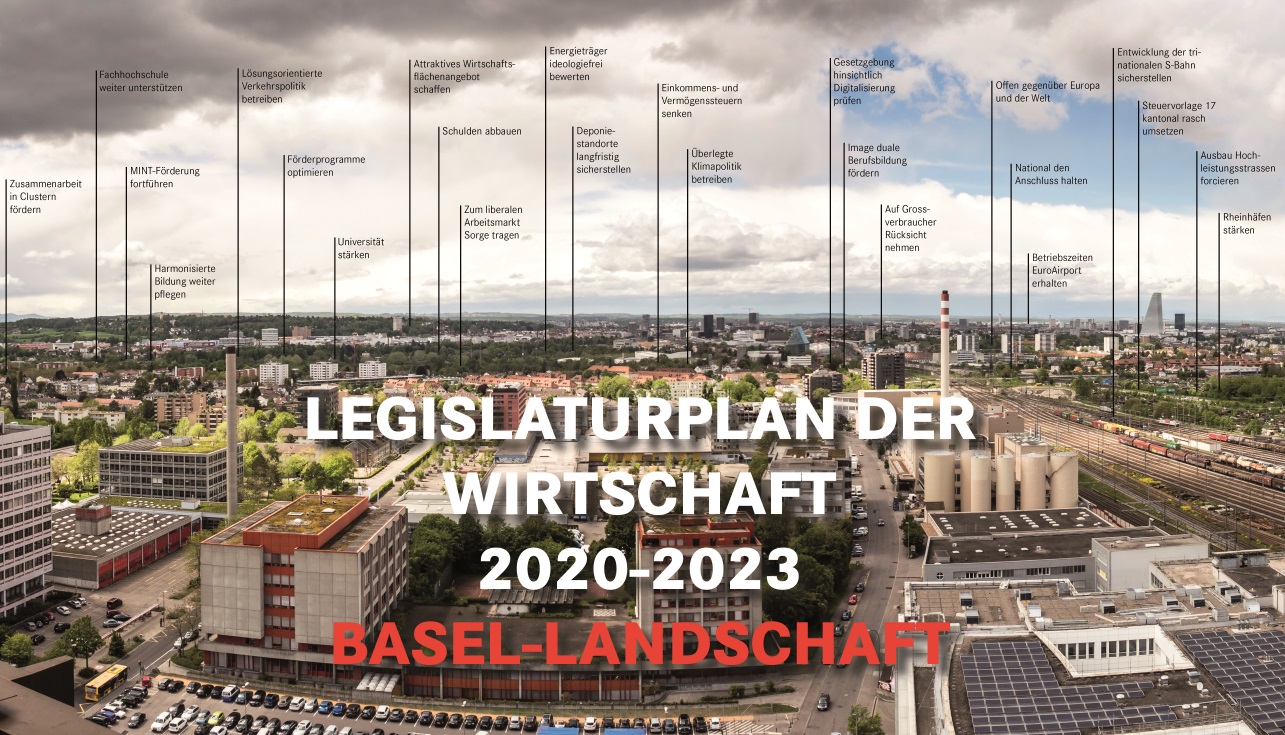 In ihrem Legislaturplan der Wirtschaft formuliert die Handelskammer beider Basel eine Auswahl an konkreten Forderungen an die Baselbieter Regierung für die kommenden vier Jahre. Damit gibt die Handelskammer Input für die nächste Legislatur und schafft die Grundlage für einen konstruktiven, bereichernden Austausch zwischen Wirtschaft und Politik.