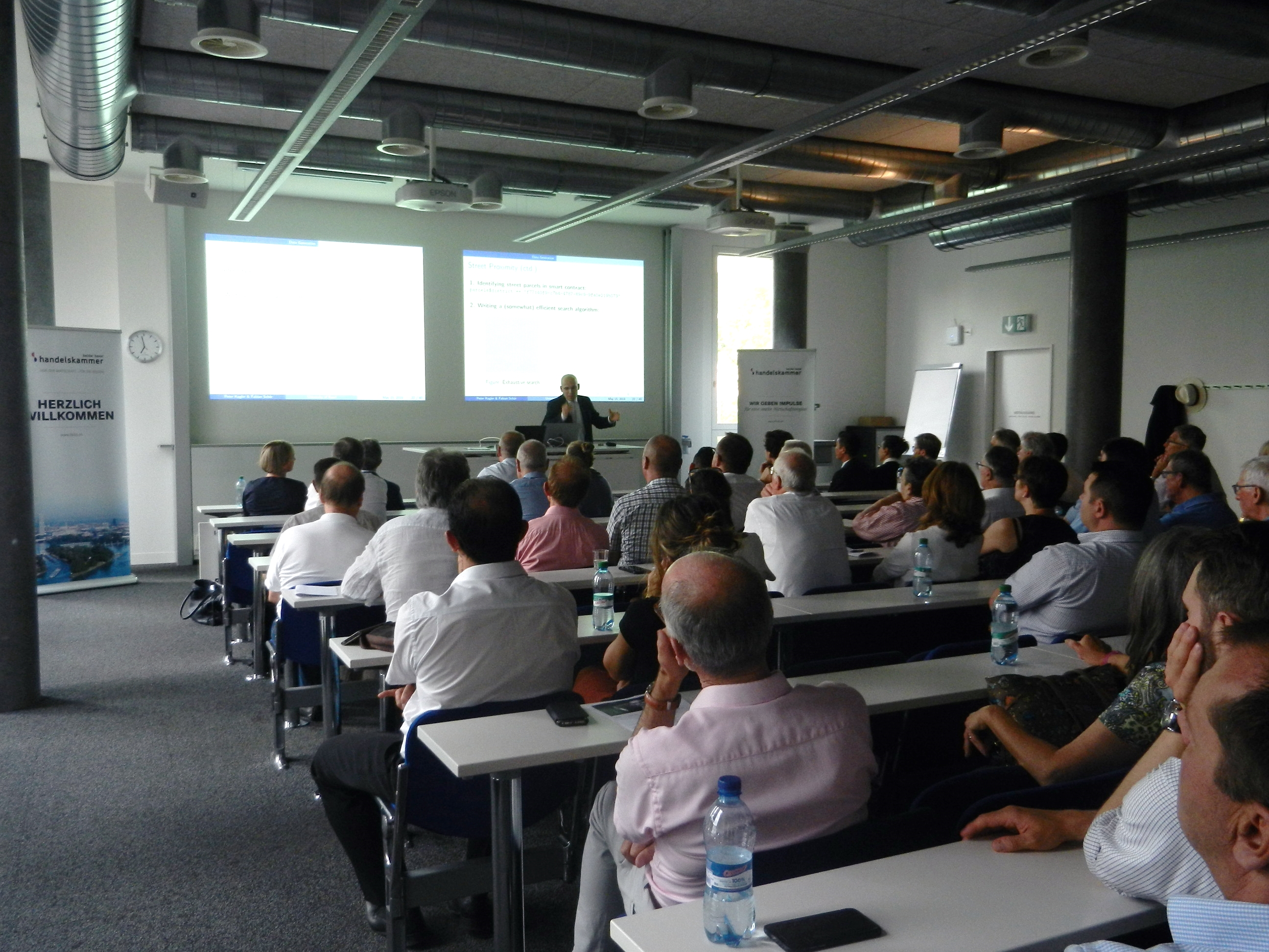 Er erläuterte die Grundlagen der Blockchain: Die Blockchain ist eine gemeinschaftlich geführte, dezentralisierte und nicht manipulierbare Datenbank, die eine Vielzahl an Anwendungen ermöglicht. Die Daten werden kryptografisch signiert und so aneinander gekettet, dass eine Manipulation sofort auffliegen würde. Dies kann über die so genannte «asymmetrische Kryptografie» und «kryptografische Hashfunktionen» sichergestellt werden. Bitcoin ist das weltweit führende digitale Kryptoasset auf Basis einer von den Teilnehmern gemeinsam verwalteten Blockchain. Transaktionen werden kryptographisch legitimiert und über ein Netz gleichwertiger Rechner abgewickelt. Schär erwähnte auch Ethereum, die zweitbeliebteste öffentliche Blockchain. Das spezielle daran: Ethereum ermöglicht das Anlegen, Verwalten und Ausführen von so genannten «Smart Contracts». «Smart Contracts» sind kleine Anwendungen, die über das Blockchain-Netzwerk ausgeführt und wiederum durch die Gemeinschaft überprüft werden können.