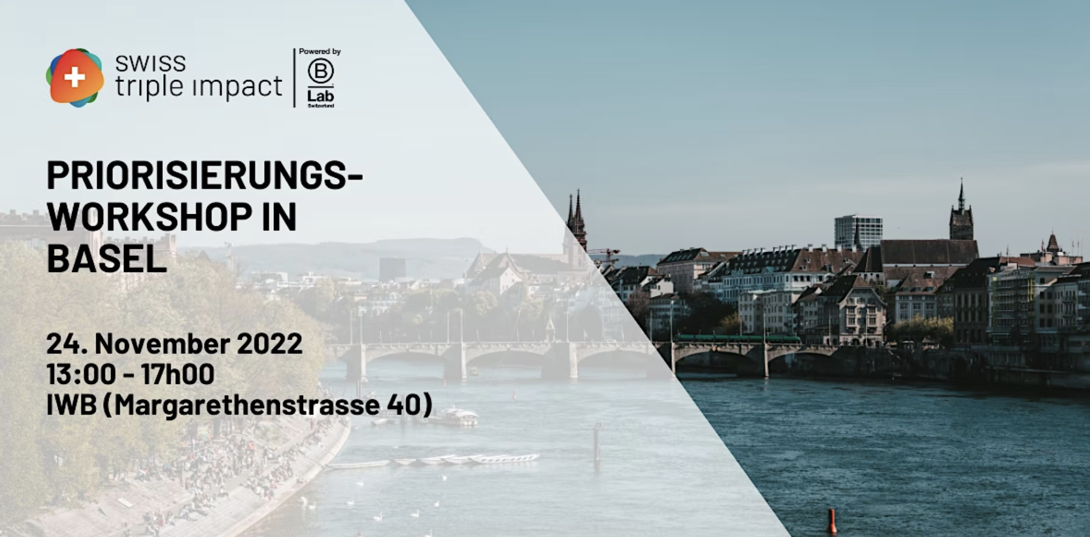 Die Basellandschaftliche Kantonalbank (BLKB), die Basler Kantonalbank (BKB), die Energieversorgerin IWB, das Universitätsspital Basel und Weleda unterstützen gemeinsam die Basler Plattform des Swiss Triple Impact (STI) Programms. Das Programm «Swiss Triple Impact» (STI) begleitet Sie, wenn Sie den Weg zu nachhaltigerem Wirtschaften einschlagen wollen. Die Nachhaltigkeitsziele (Sustainable Development Goals, SDGs) der Uno bilden die Grundlage dieses Programms. Der Workshop wird von der gemeinnützigen Organisation B Lab Schweiz angeboten, die das Programm «Swiss Triple Impact» in der Schweiz umsetzt.