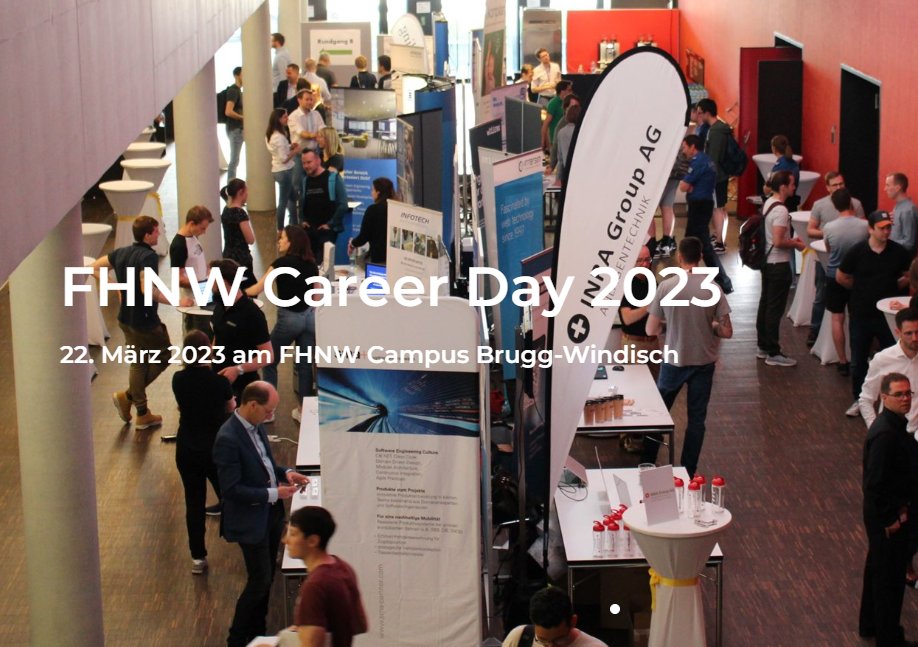 Zur AnmeldungDer «Career Day 2023» der Fachhochschule Nordwestschweiz FHNW wird am 22. März 2023 auf dem Campus in Brugg-Windisch stattfinden. Eingeladen sind mehr als 2'000 vor ihrem Abschluss stehende FHNW-Studierende unterschiedlicher Bachelor- und Masterstudiengänge (von Informatik über Engineering und Data Sciences bis Betriebswirtschaft).
