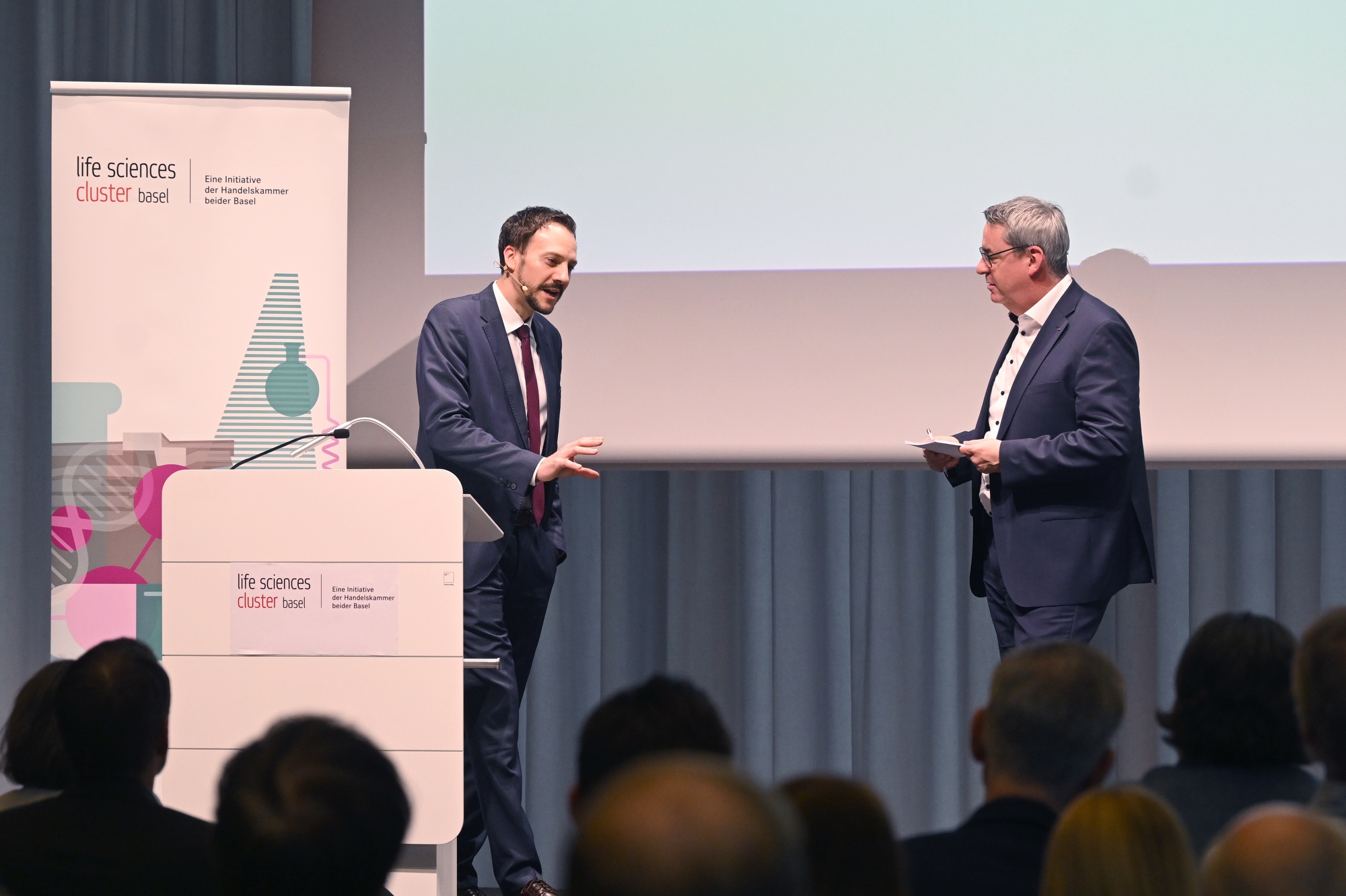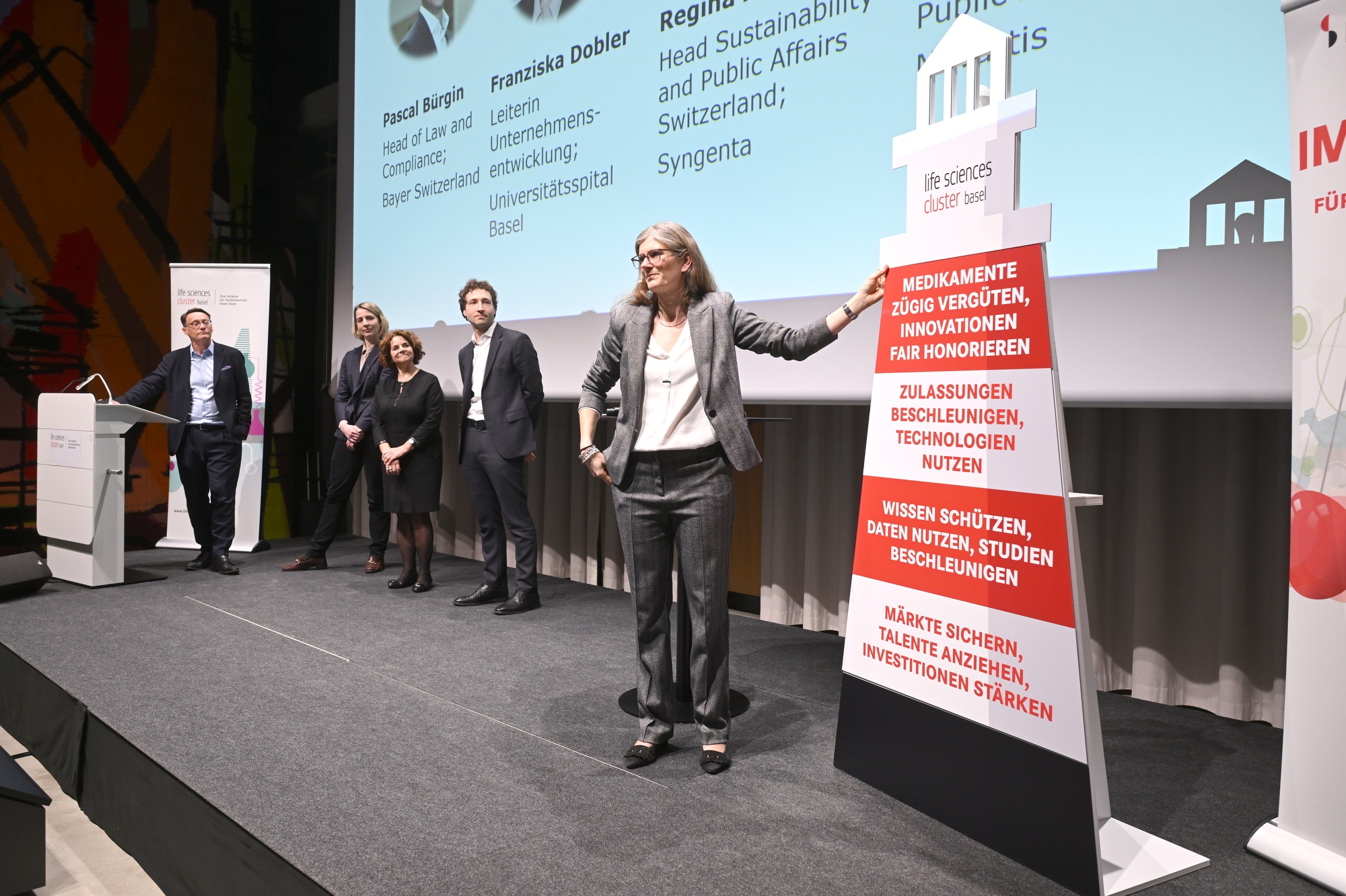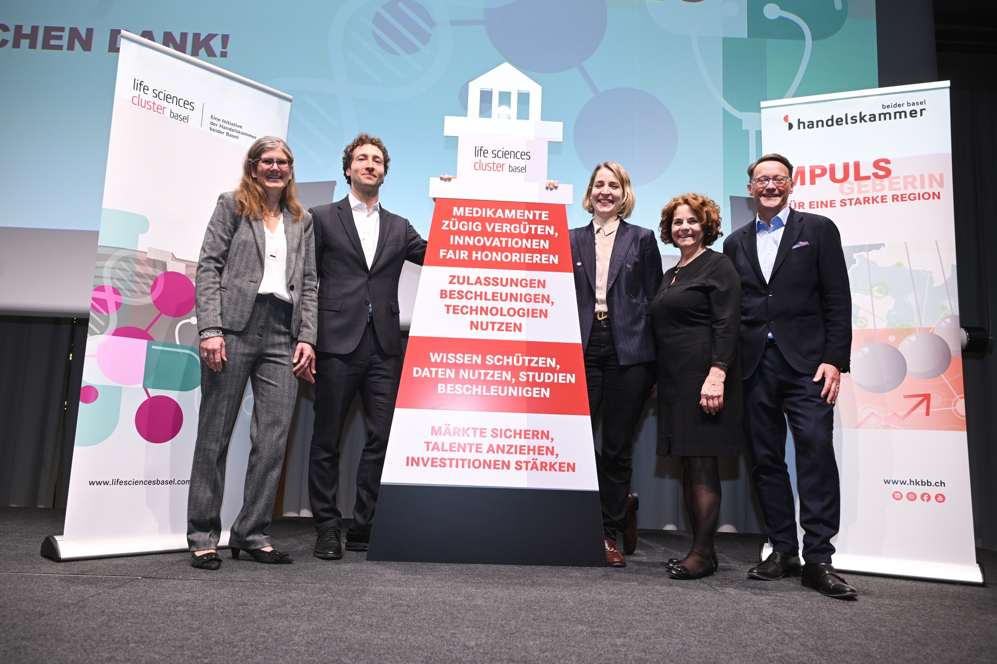 An unserem Life Sciences Cluster Forum übergaben wir BAG-Direktorin Anne Lévy und Ronald Indergand, Leiter Direktion für Wirtschaftspolitik SECO unseren Forderungskatalog für eine nationale Life Sciences-Strategie. Wir fordern rasche Reformen, um die internationale Wettbewerbsfähigkeit der Schweiz dank einer starken Life Sciences-Industrie zu sichern. Insbesondere fordern wir schnellere Zugänge zu innovativen Therapien und Lösungen, effizientere klinische Prozesse und international anschlussfähige regulatorische Rahmenbedingungen.