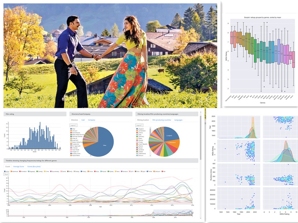 Das Forscherteam am CeDA entwickelte eine interaktive Visualisierungsanwendung, um die sozioökonomischen Aspekte des indischen Films mit europäischen Drehorten zu untersuchen.
