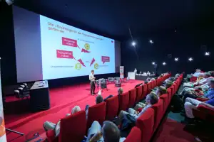 Unter gleissendem Sonnenschein begaben sich die zahlreichen Zuschauenden einmal mehr ins ehemalige Küchlin-Kino zum interaktiven Anlass «Werkstatt Basel» der Handelskammer beider Basel. Diesmal dreht sich alles um Energietechnologien der Zukunft. Nach der Begrüssung durch Handelskammer-Direktor Martin Dätwyler rief Moderator Dani von Wattenwyl sogleich die erste Publikumsumfrage aus: Seine Frage, ob Temperaturen von über dreissig Grad als angenehm wahrgenommen werden, beantworteten 52 Prozent der Teilnehmenden mit Ja. Gute Voraussetzungen für hitzige Debatten also – dennoch startete der Abend mit kühlen Fakten.