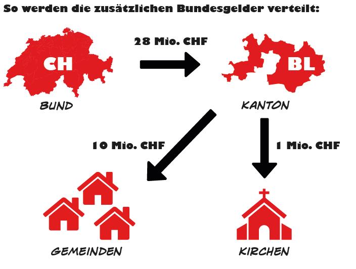 Damit die Kantone die Steuervorlage 17 finanzieren können, bekommen sie vom Bund zusätzliche finanzielle Mittel: Die Kantone ziehen für den Bund die direkte Bundessteuer ein. Diese Einnahmen leiten sie nach Bundesbern weiter. Für ihren Aufwand durften sie bisher 17 Prozent der Einnahmen behalten. Künftig erhalten sie 21,2 Prozent. Der Kanton Basel-Landschaft hat dadurch ab 2020 deutlich mehr pro Jahr in der Kasse.