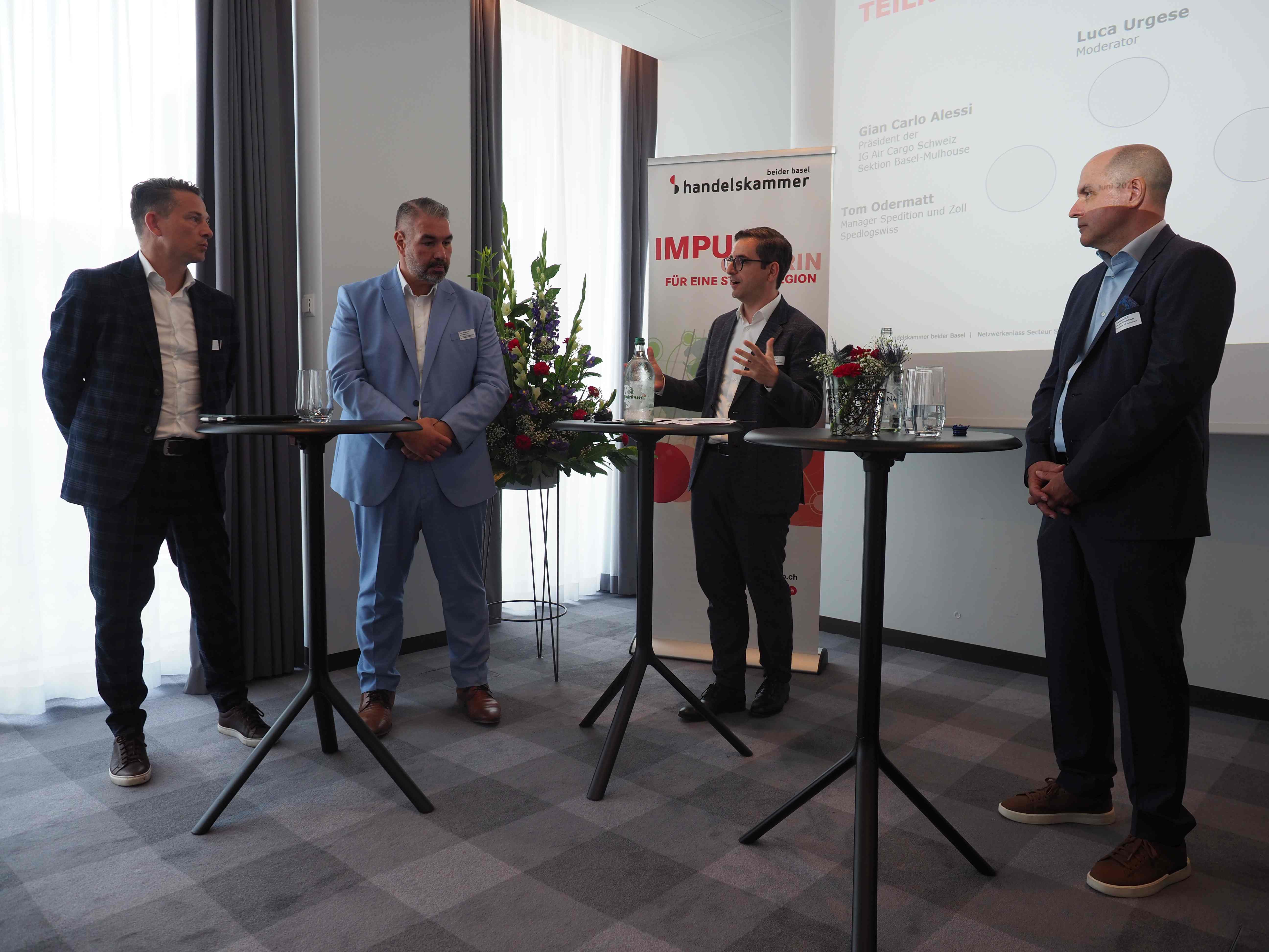In der anschliessenden Podiumsdiskussion unter der Leitung von Luca Urgese, Geschäftsführer der Koordinationsplattform, bestätigte sich, dass der Flughafen gut aufgestellt ist. Die logistischen Abläufe seien besser organisiert als beispielsweise in Zürich, führte Tom Odermatt, Manager von Spedlogswiss aus. Dies sei ein Standortvorteil. Es gibt aber durchaus Herausforderungen, wie beispielsweise der Arbeitskräftemangel. Dank der Lage des Flughafens, können auch Arbeitskräfte aus dem Elsass rekrutiert werden, was ein Vorteil ist, so Odermatt. Ein Nachteil sei jedoch die Rechtsunsicherheit beim anwendbaren Arbeitsrecht. Deshalb drängen die ansässigen Unternehmen nun seit einiger Zeit auf eine nachhaltige Lösung.