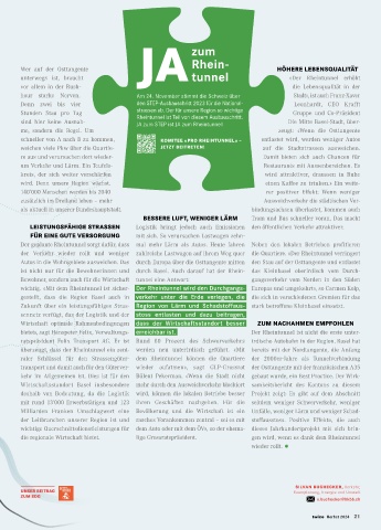 TUNNELABSCHNITT KLYBECK bietet», sagt Hanspeter Felix, Verwaltungs- erreichbar ist. Der Rheintunnel ist nicht die erste unter-
