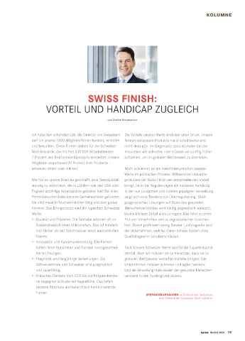Wie hat es unsere Branche geschafft, eine Deindustriali- produkten der Swiss Finish den entscheidenden Vorteil
