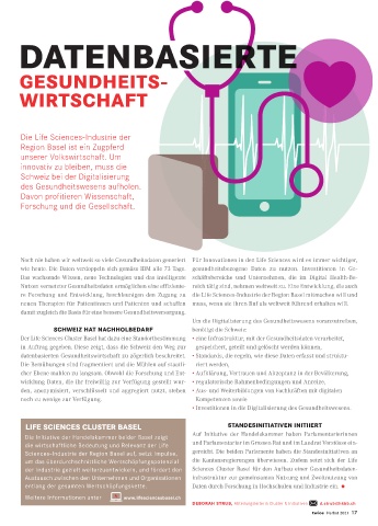 Der Life Sciences Cluster Basel hat dazu eine Standortbestimmung • eine Infrastruktur, mit der Gesundheitsdaten verarbeitet,